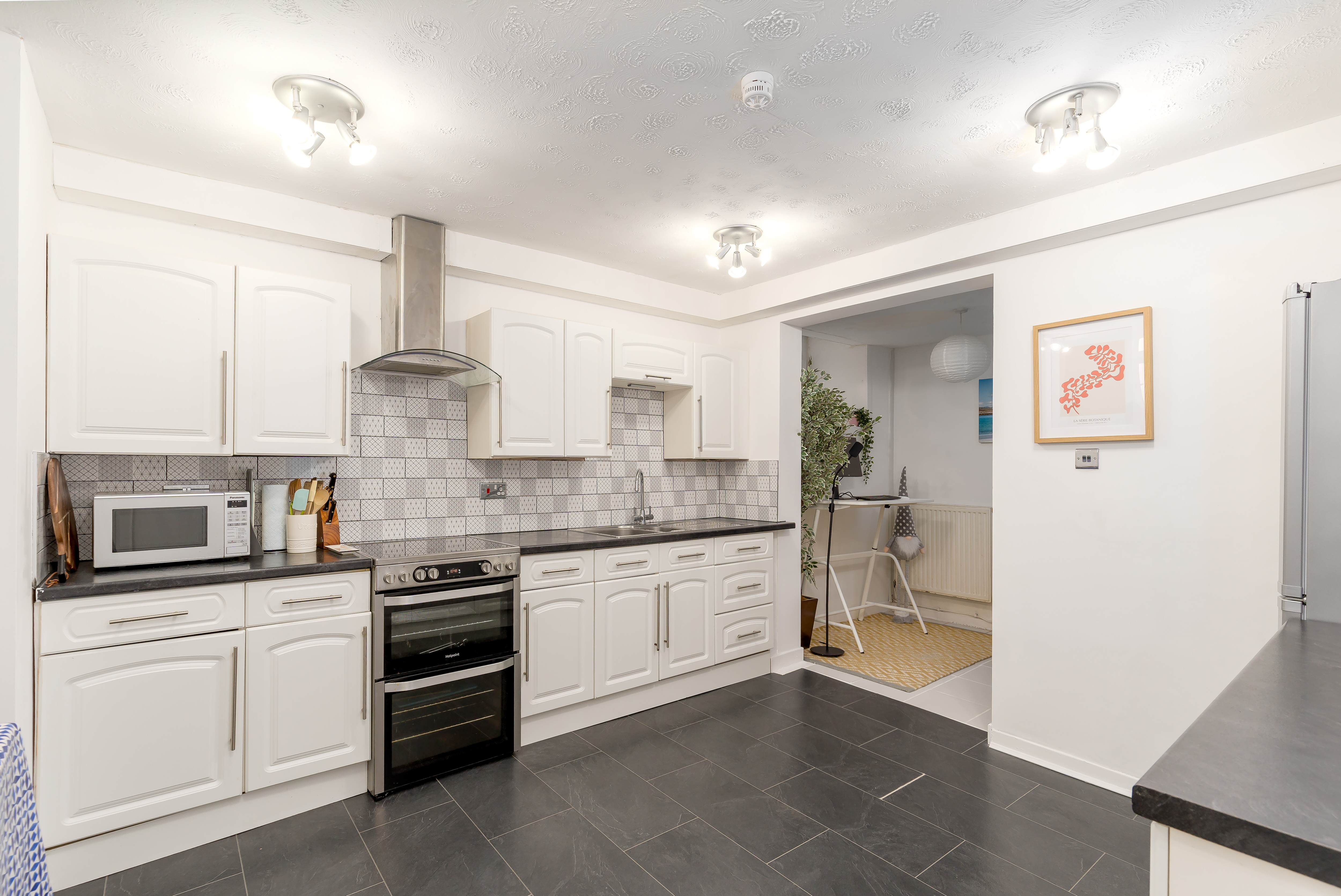 The accommodation comprises a stunning bay-windowed lounge featuring ornate cornicing, creating an elegant and welcoming living area. The spacious kitchen diner is fitted with a range of floor and wall-mounted units, an electric hob and oven, ideal for modern family living. There are three well-proportioned double bedrooms, one of which includes built-in wardrobes offering excellent storage, and a versatile single bedroom that would make an ideal home office or nursery. A fully tiled family bathroom features a three-piece suite with an electric shower over the bath, complemented by a convenient ground floor WC. A large utility room provides plenty of additional storage space, while gas central heating and double glazing throughout ensure maximum comfort and energy efficiency. The property also boasts a beautifully maintained private front garden, and on-street permit parking is readily available.