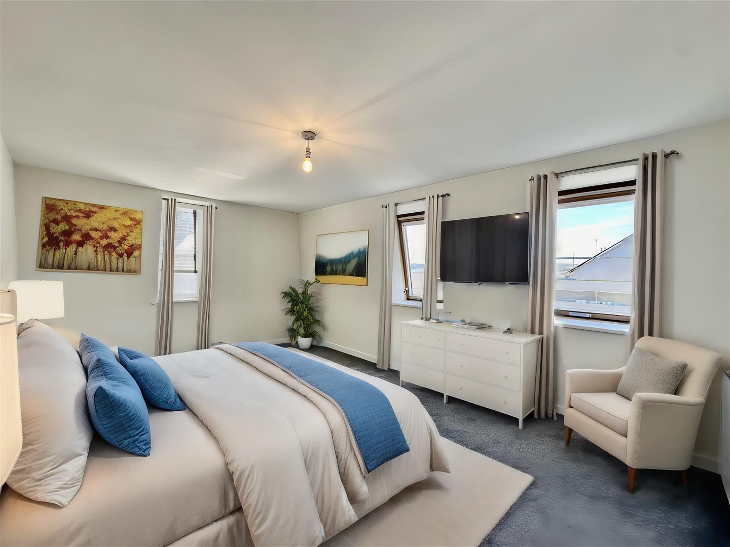 This home benefits from its own entrance and allocated parking. On the ground floor there is an entrance hall with stairs to first floor where there is a spacious, fully fitted kitchen/diner, and separate lounge with sea views. To the second floor there are two double bedrooms with further sea views and house bathroom. Externally there is parking for one.