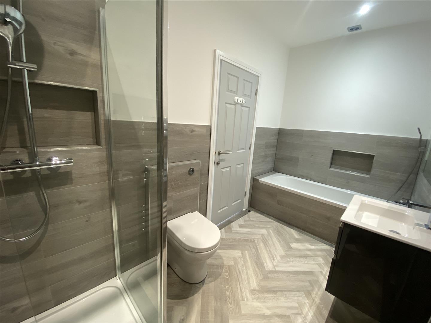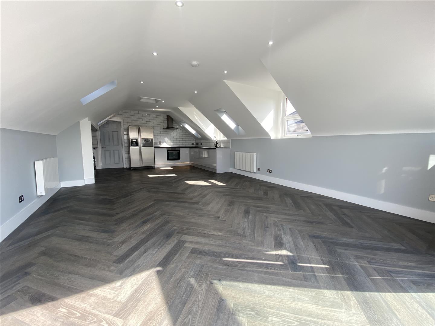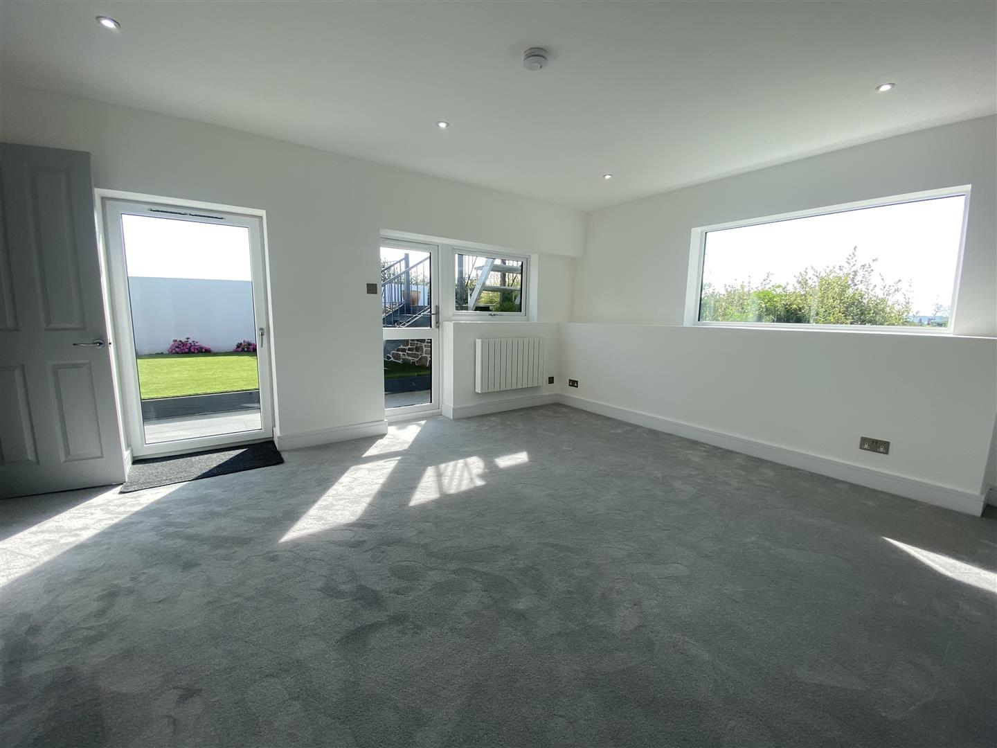 Upstairs can be accessed from both downstairs and from the South-West facing spacious sun terrace and comprises; kitchen/lounge/diner with large bi-folding doors offering access to the sun terrace, two additional double bedrooms and a modern bathroom.