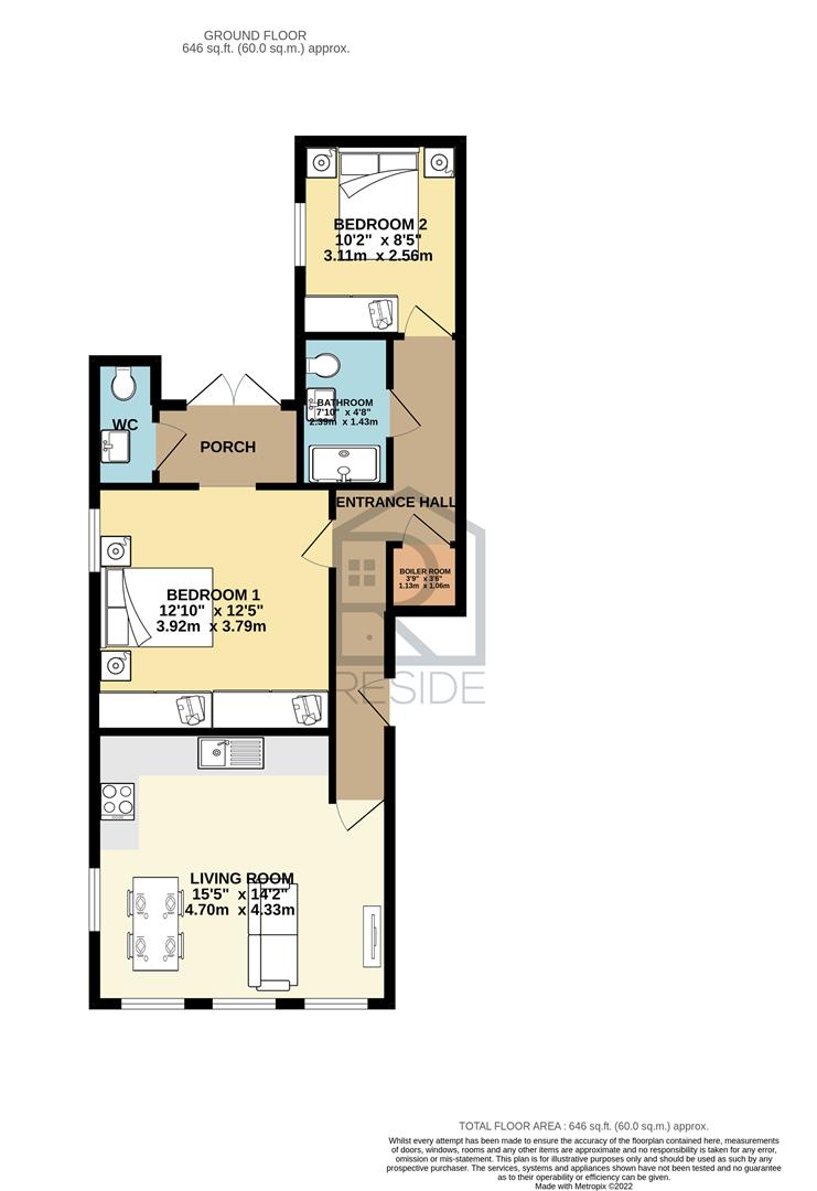 The apartment briefly comprises; entrance hall with storage, separate WC, open plan living area and kitchen with integrated appliances including dishwasher, washer/dryer, microwave and oven/hob. The apartment also benefits 2 double bedrooms and a modern bathroom.