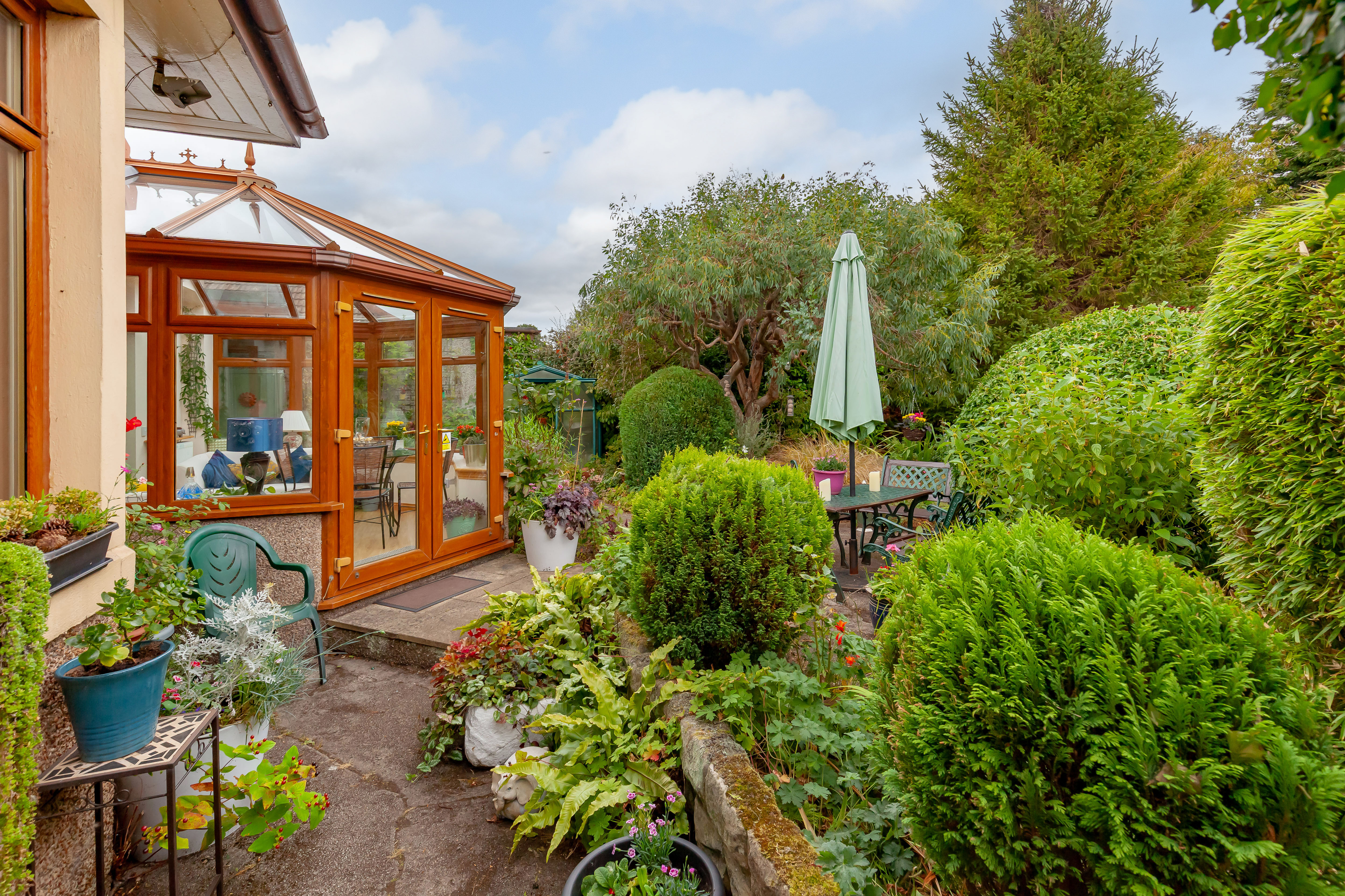 The accommodation comprises a beautiful bay-windowed lounge featuring ornate cornicing, a centre rose, and a gas fireplace. A second living room, with a large conservatory leading off it, provides further versatility. The kitchen is fitted with a range of floor and wall-mounted units, a gas hob, electric oven, and integrated appliances. There are five double bedrooms in total-two on the ground floor, both with bay windows, and three on the upper level, each offering access to useful eaves storage. The property also includes a shower room with a two-piece suite and walk-in electric shower, as well as a family bathroom fitted with a three-piece suite. Additional benefits include gas central heating and double glazing throughout, ensuring comfort and efficiency. Externally, the property boasts extensive and very private gardens filled with mature flowers, shrubs, a pond, and both a shed and greenhouse-perfect for gardening enthusiasts. A single garage and off-street parking via a private driveway further enhance the appeal of this wonderful home.