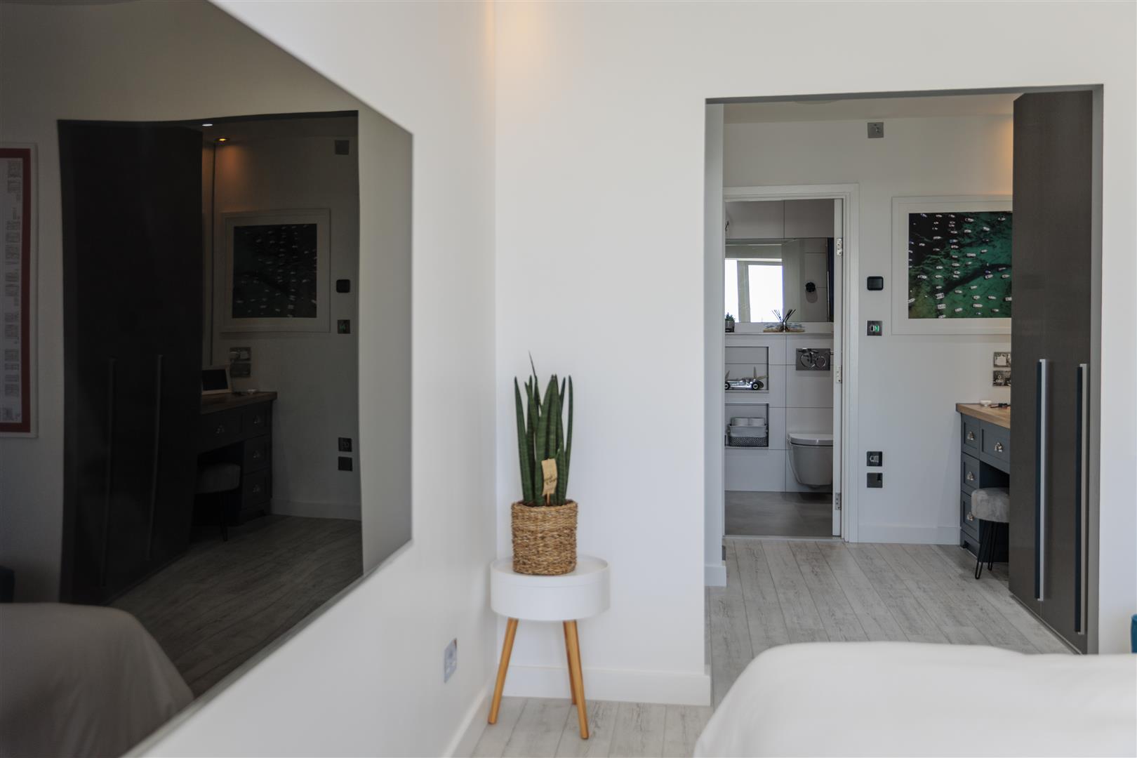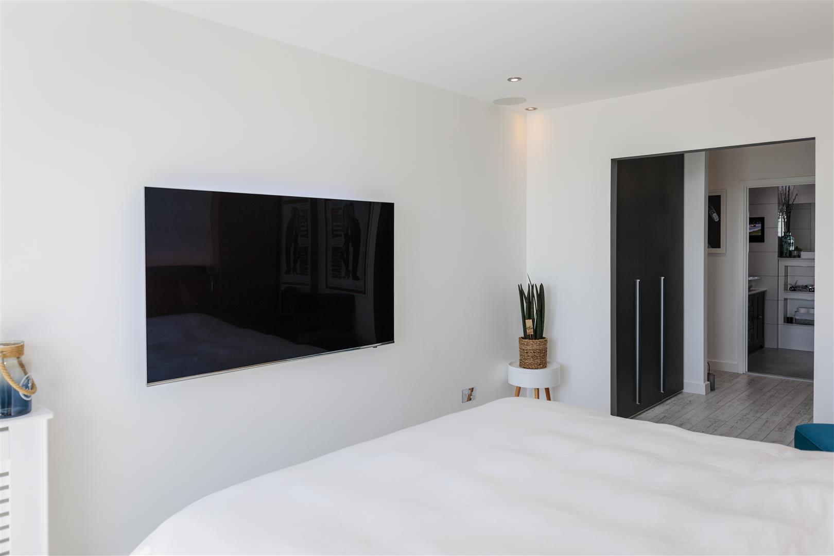 All rooms benefit from Somfy electric blackout blinds, all new LED spot lights + remote controlled ambiance lighting, in-ceiling speakers, CAT6 connections and smart (miGenie) controlled heating system.