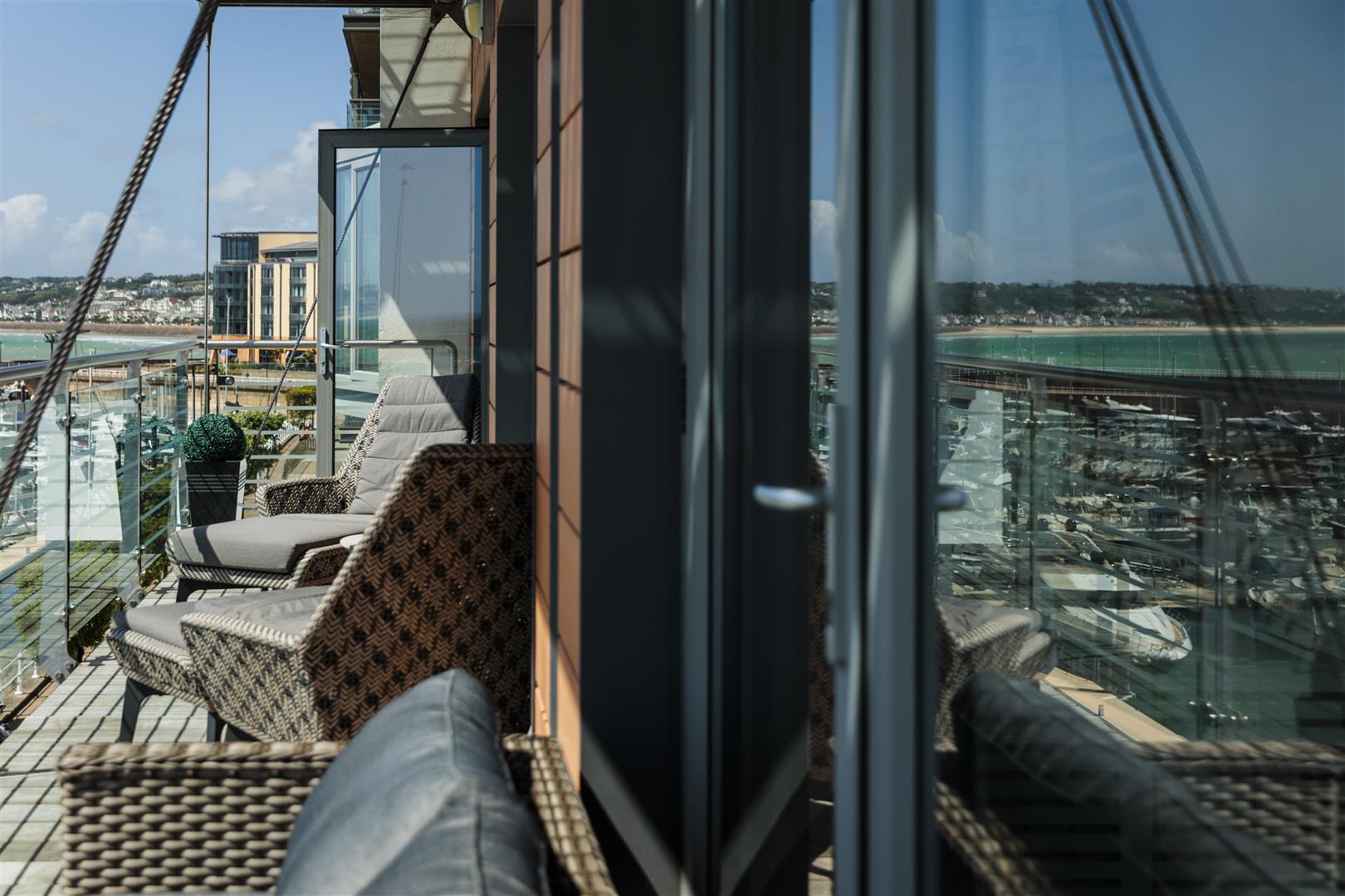 Presented in show-home condition after recently being fully refurbished to a very high standard, this property offers stunning panoramic views across the whole of St Aubin’s Bay, Elizabeth Castle and beyond from a private 38ft south facing balcony to enjoy those ever changing captivating seas views and spectacular sunsets.