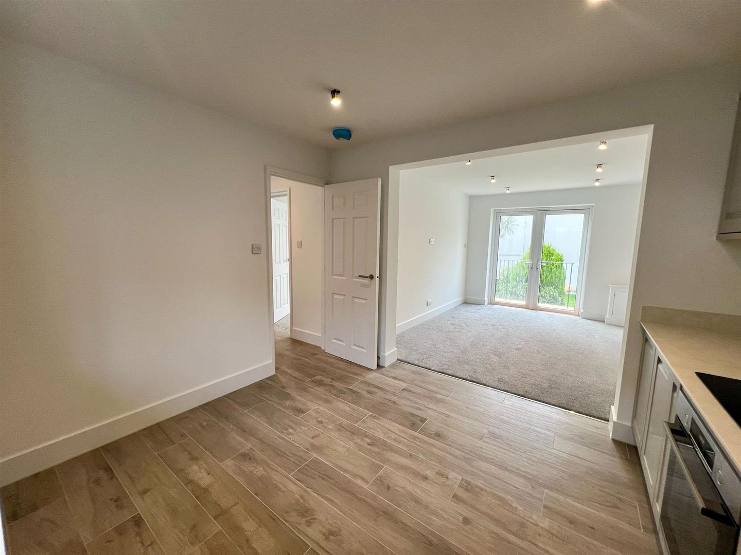 The house has been refurbished throughout and briefly comprises, an entrance hall, house bathroom and double bedroom. To the ground floor there is an a double bedroom with views onto the garden and an open plan fully fitted kitchen and spacious lounge with double doors leading onto the south west facing patio which allows access to communal gardens. There is also allocated parking for one car.