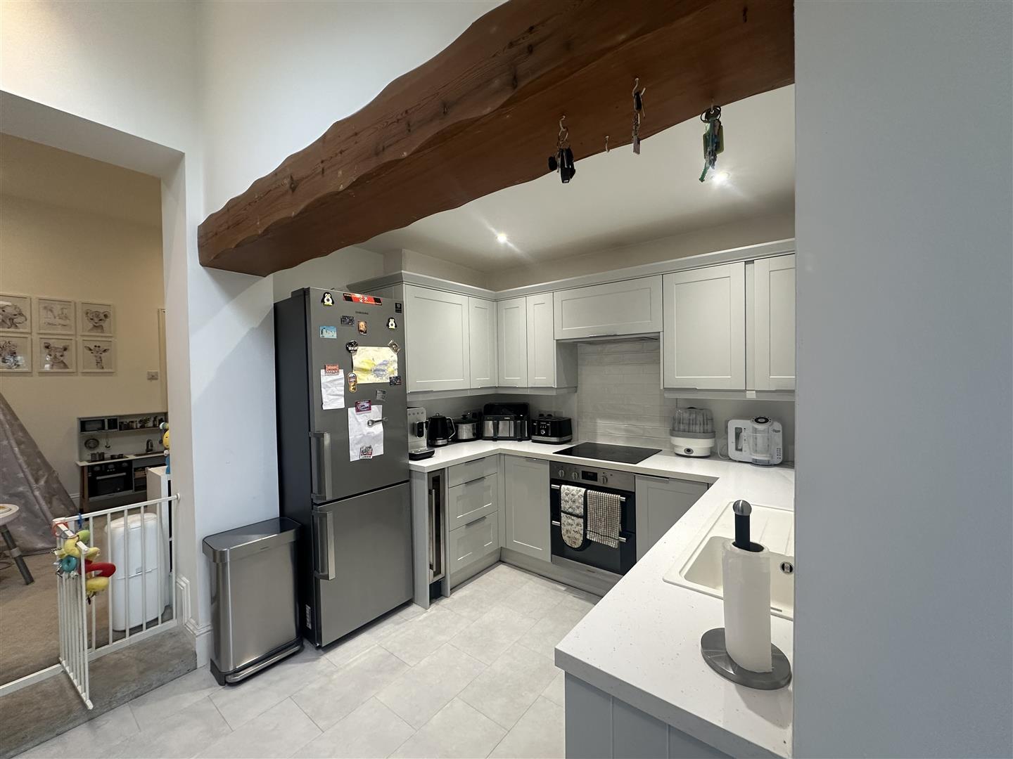 Upstairs, there is a a generous sized bedroom and a single room as well as a modern house bathroom. Stairs lead to the top floor bedroom which enjoys plenty of natural light.