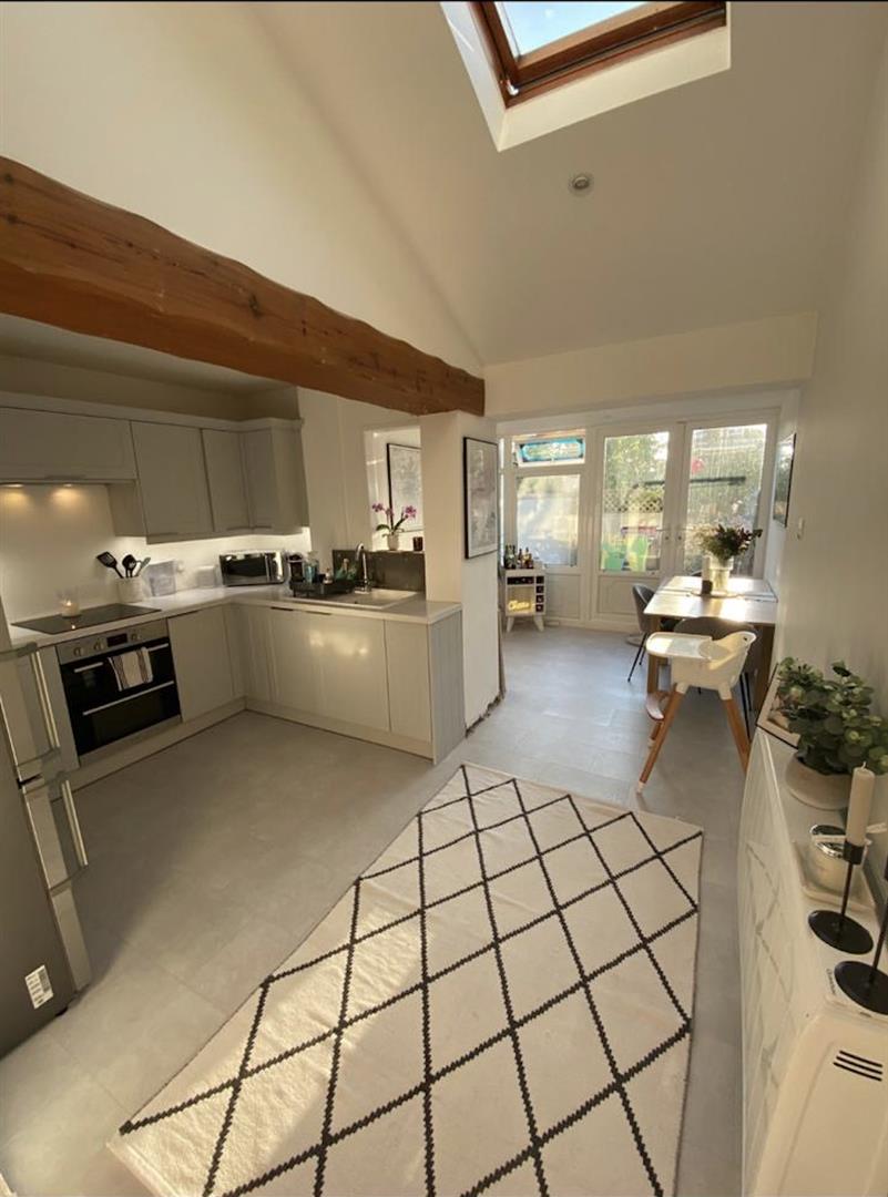 Upon entering you are welcomed by a bright and spacious living area. Adjacent is a versatile recpetion room that leads seamlessly into a light-filled kitchen diner. A conservatory extends from the kitchen, opening onto a patio and a lawned garden, ideal for outdoor entertainments. A convenient downstairs WC completes the ground floor.