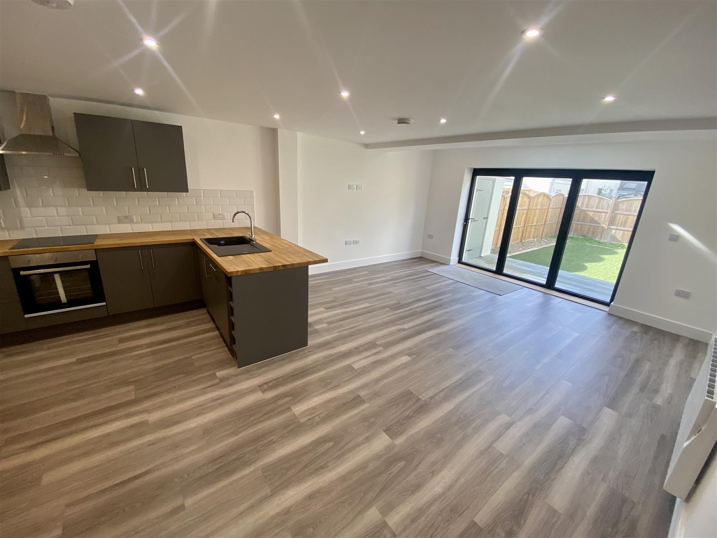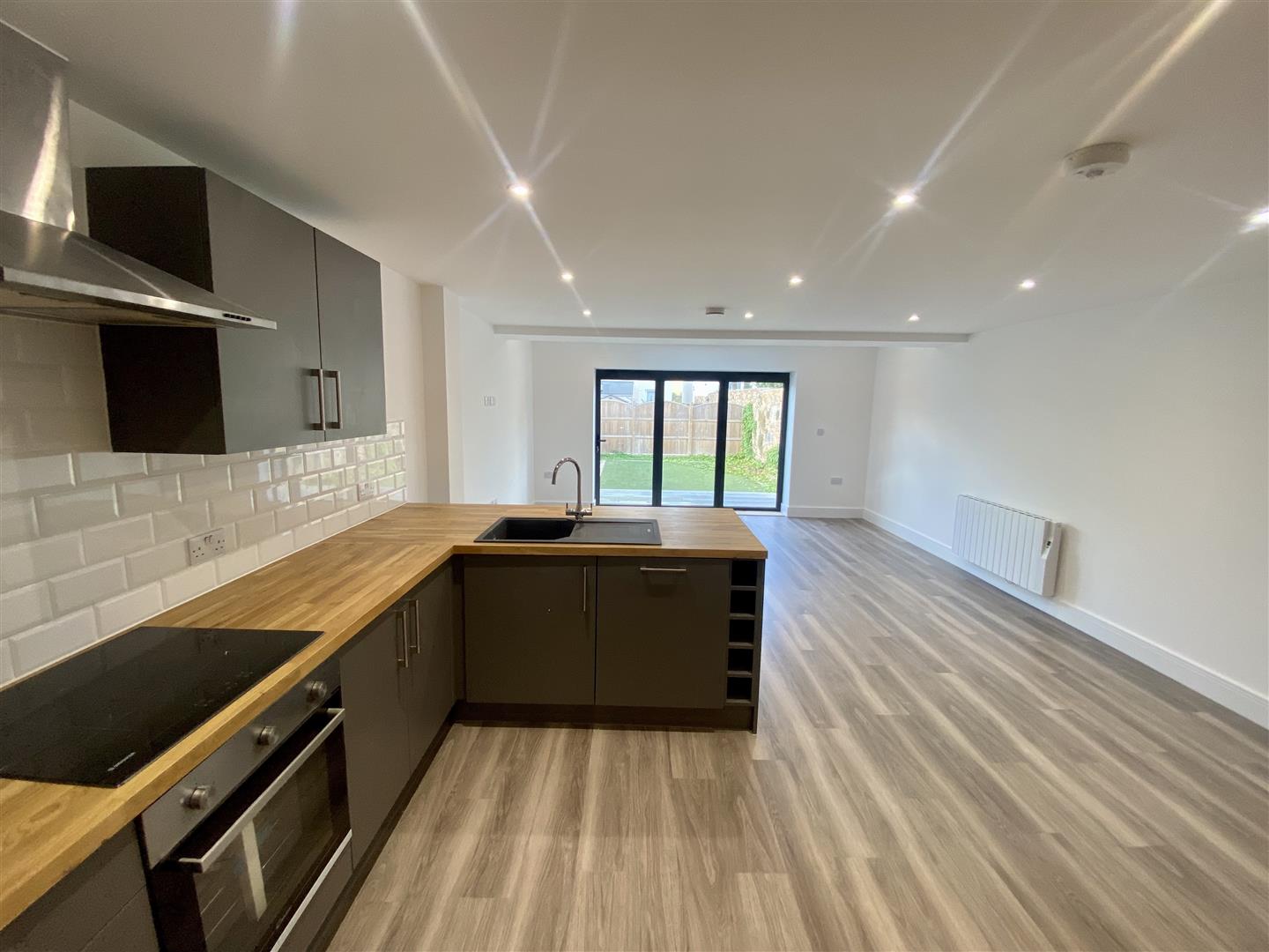 Set over three floors and designed meticulously by Kalmac Construction, the ground floor offers a spacious porch and w/c leading on to the large open plan living style with modern kitchen, including integrated appliances such as, dishwasher, microwave, fridge freezer and oven. Set off the kitchen is a utility area with integrated washer/dryer. The bright lounge has modern bi-folding doors opening up onto the west facing garden.