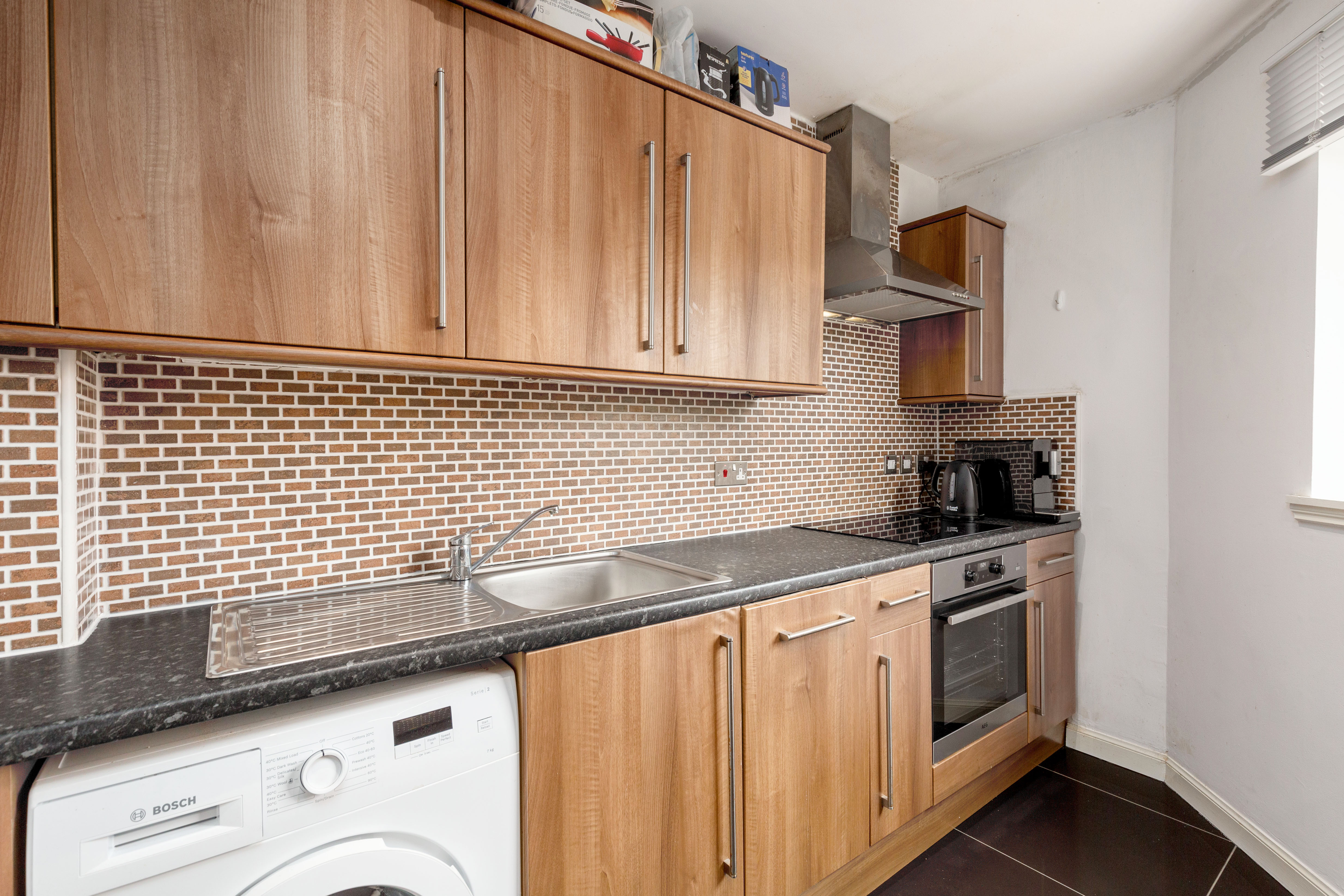 The accommodation comprises a bright and spacious bay-windowed living/dining room—an ideal space for relaxing or entertaining guests. The smart galley kitchen is well-appointed with a range of floor and wall-mounted units, an electric hob and oven, and integrated appliances, all of which are included in the sale. There are two generous double bedrooms, both featuring fitted wardrobes that provide ample storage. The modern shower room is fitted with a two-piece suite and a mains-powered walk-in shower with a luxurious rainwater shower head. Additional benefits include electric heating, double glazing throughout for maximum energy efficiency, and residents' parking. Please note: The property is factored by Myreside Management Ltd with a quarterly charge of £300 which covers buildings insurance and maintanence costs.