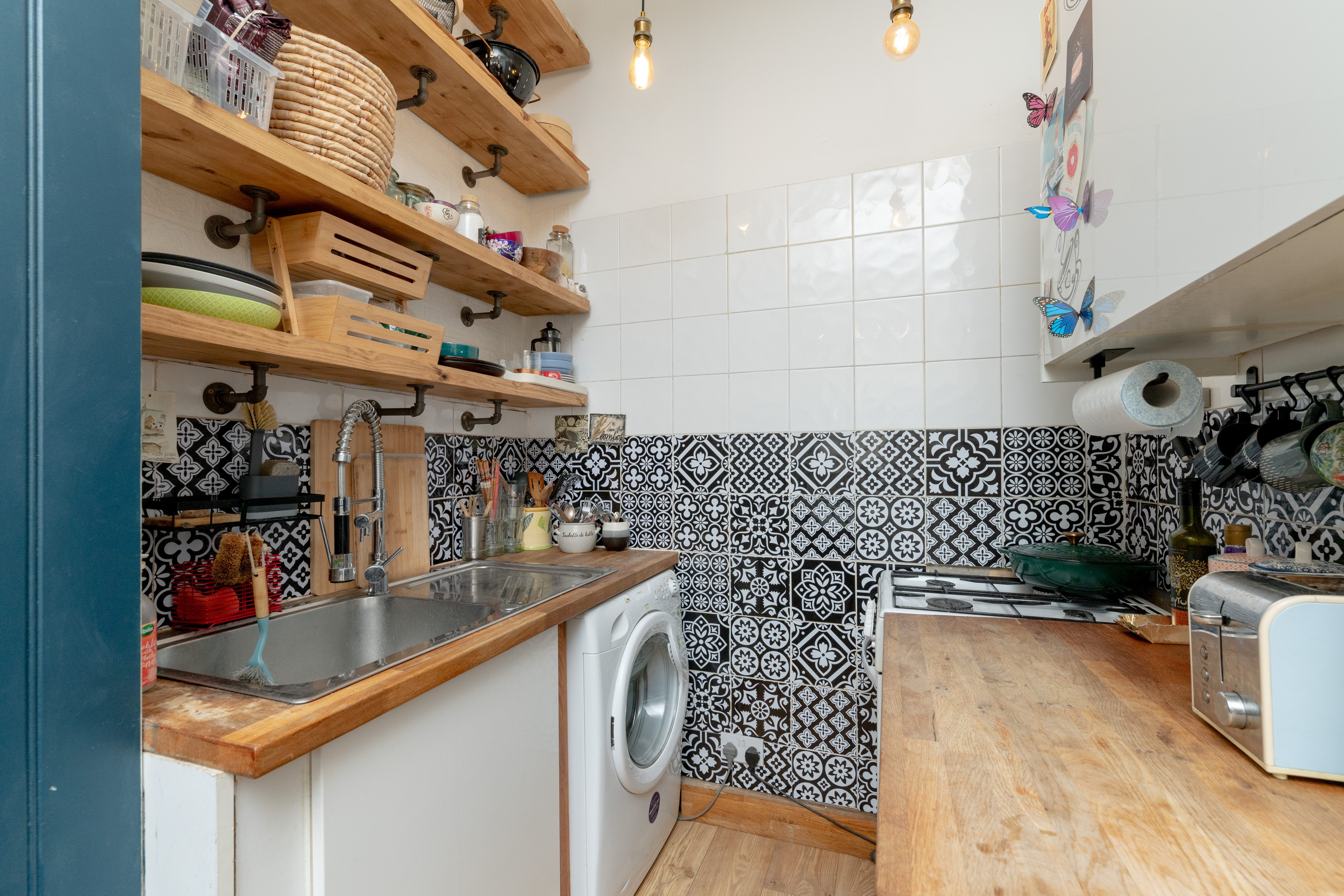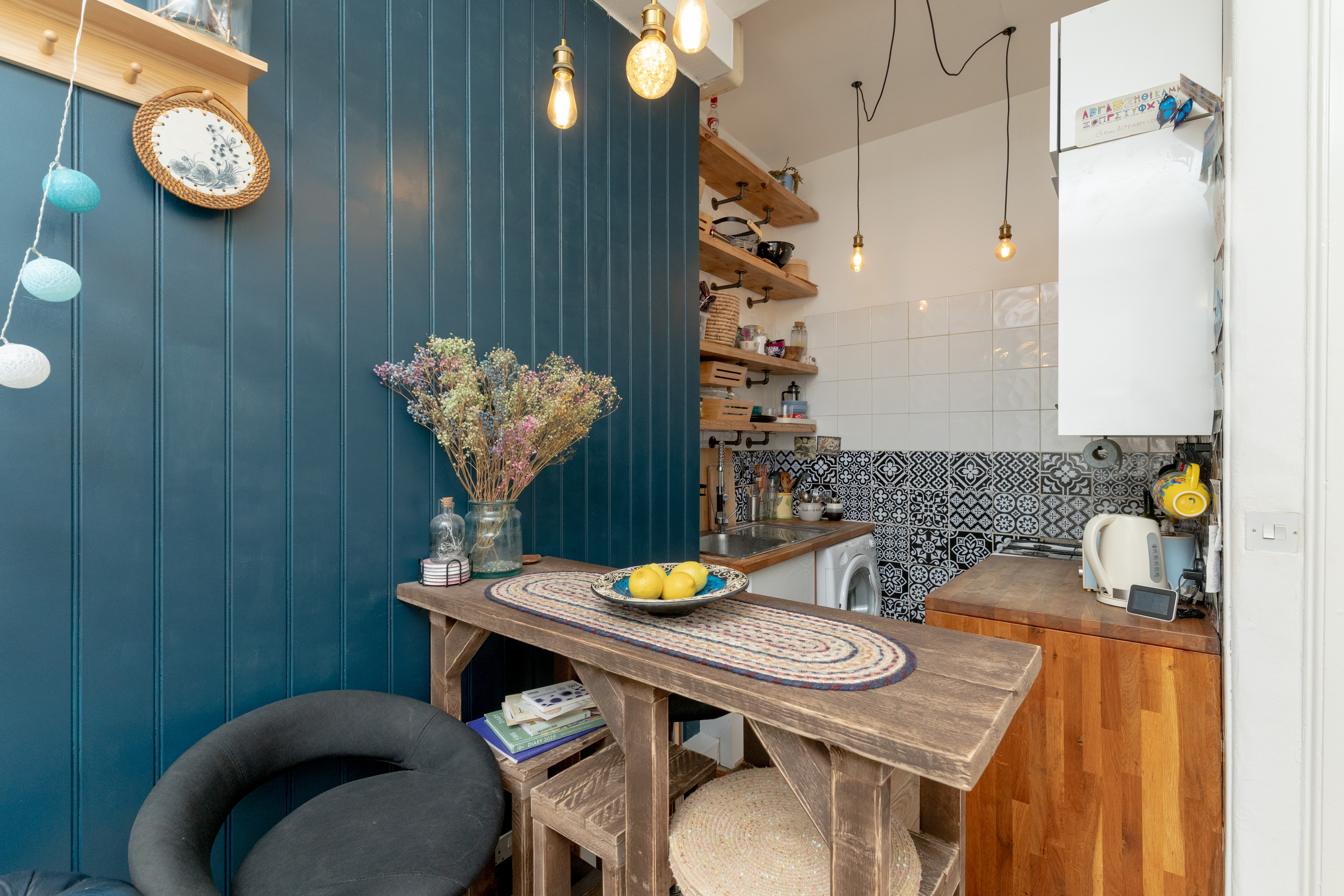 The accommodation comprises a generous open-plan living, kitchen, and dining area — the ideal space for relaxing or entertaining friends. A charming gas burner adds warmth and character, especially during the colder winter months. The galley-style kitchen is fitted with a range of wall and floor-mounted units, a gas hob, electric oven, and includes white goods as part of the sale. The spacious double bedroom benefits from fitted wardrobes, providing ample storage. The stylish bathroom features a two-piece suite and a mains-fed walk-in shower. Additional features include gas central heating, double glazing throughout, a communal rear garden, and a small private front garden that becomes a perfect suntrap during the summer. On-street permit parking is readily available. Please Note - A fee of £35 a quarter is paid for cleaning of the communal stair
