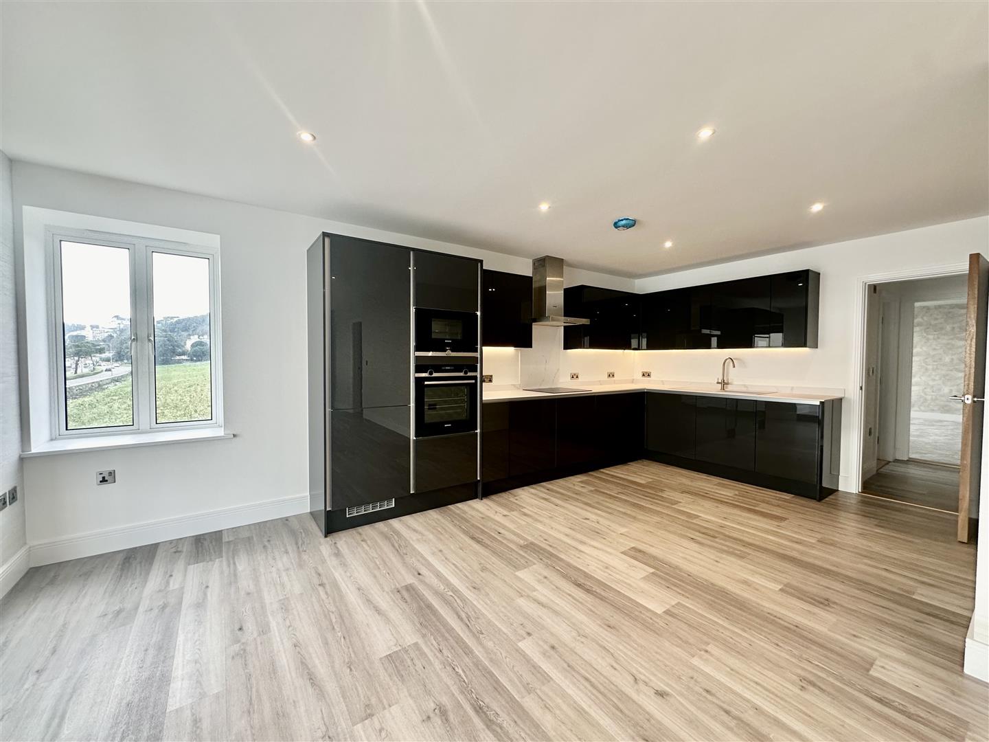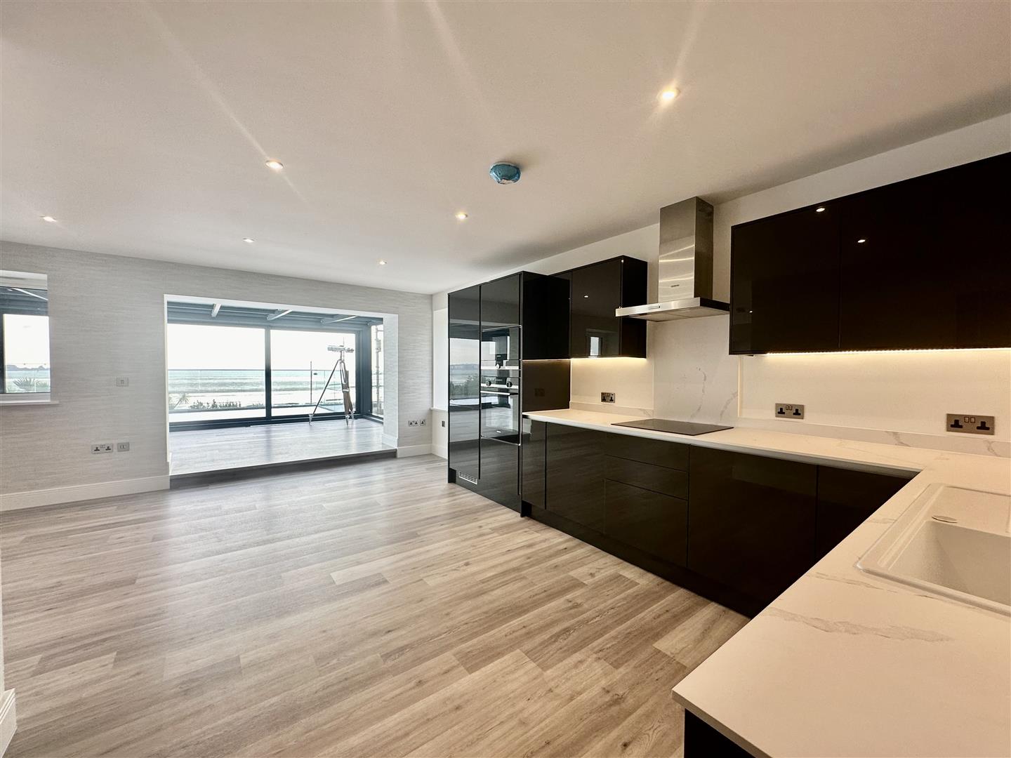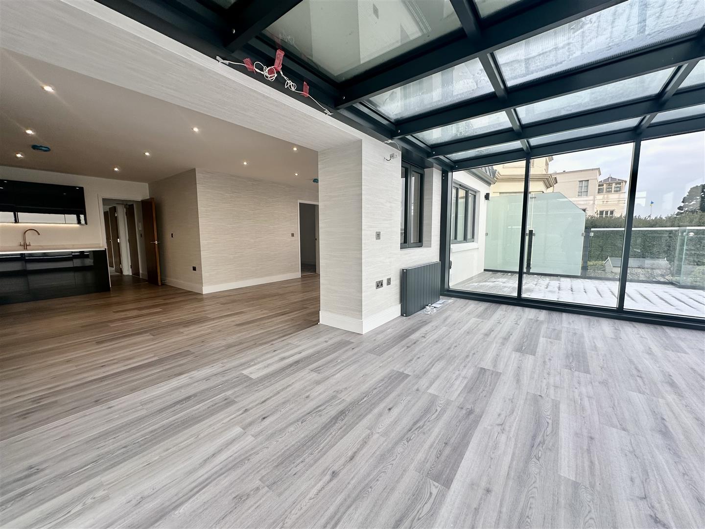 Apartment 3 is a first floor apartment, measuring over 1100sq ft, briefly comprising; open plan living room with a bespoke media wall and with fully fitted kitchen, sun room with fantastic views, master bedroom with dressing area and ensuite, a further double bedroom, house bathroom and a fantastic terrace with sea views. This apartment also benefits from two allocated parking spaces in a gated drive, electric charge port and an external store.