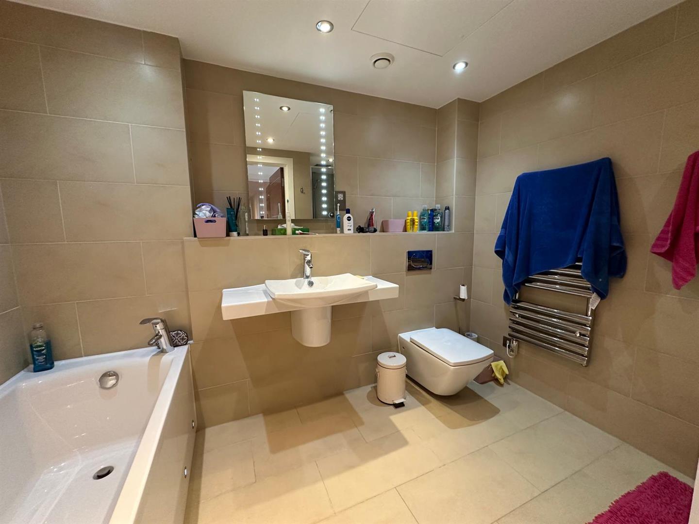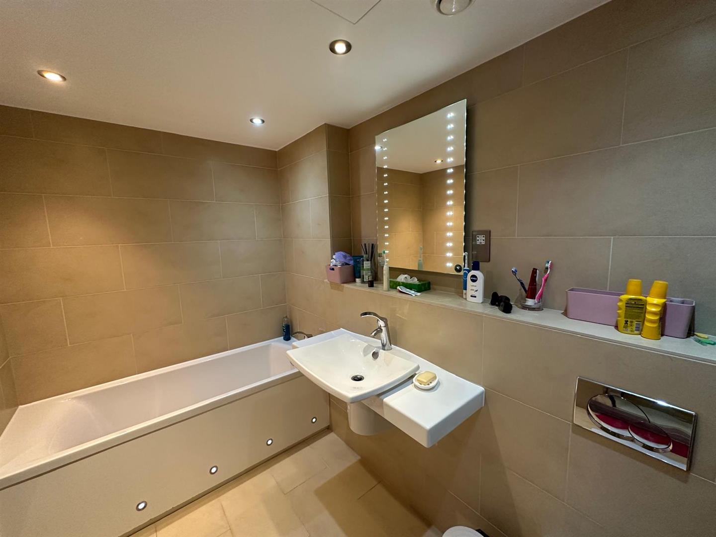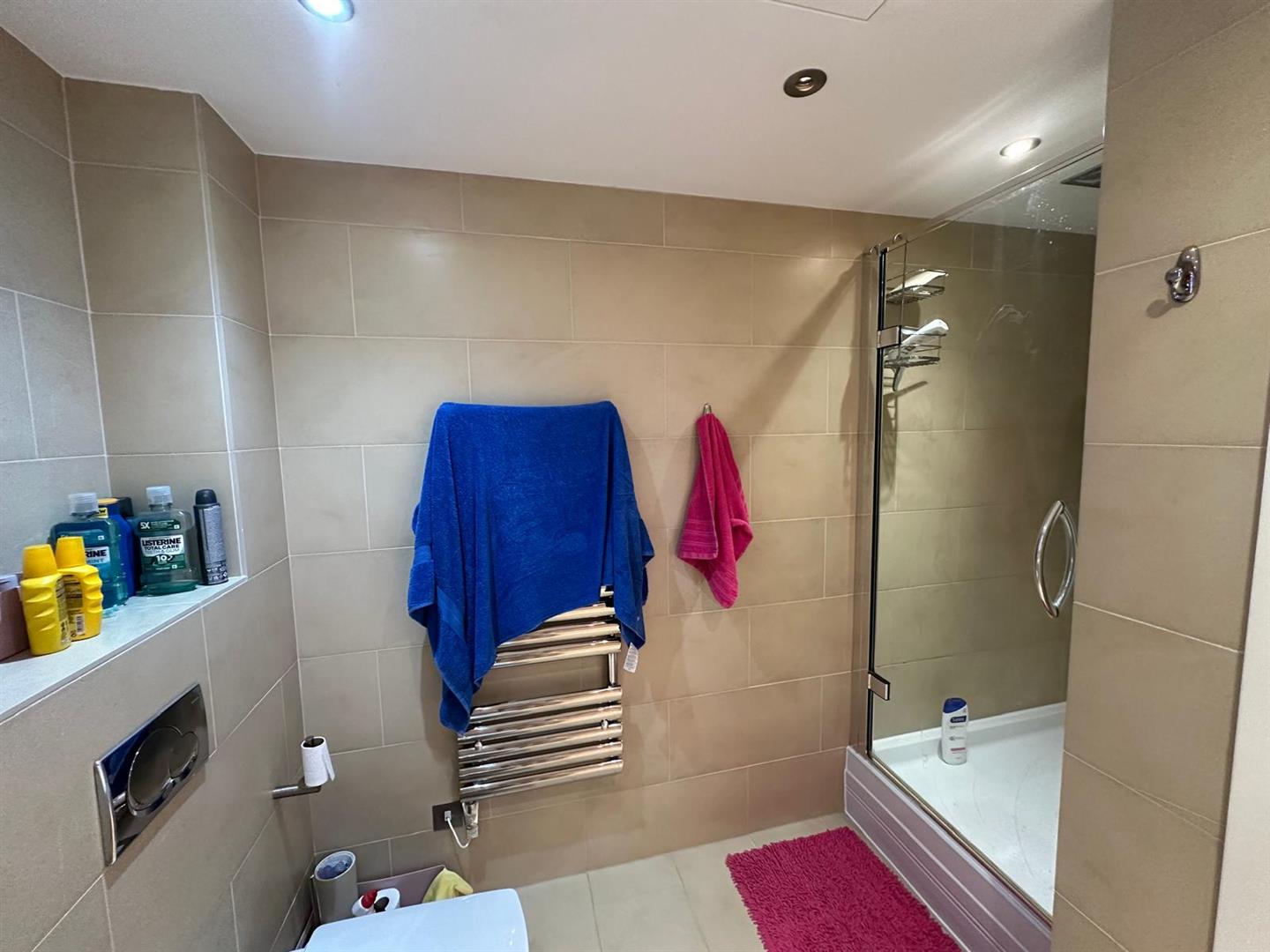 The apartment features two generous double bedrooms, each with built-in wardrobes and access to their own terrace. The master bedroom benefits from a stylish en-suite bathroom, while the second bedroom is equally spacious.