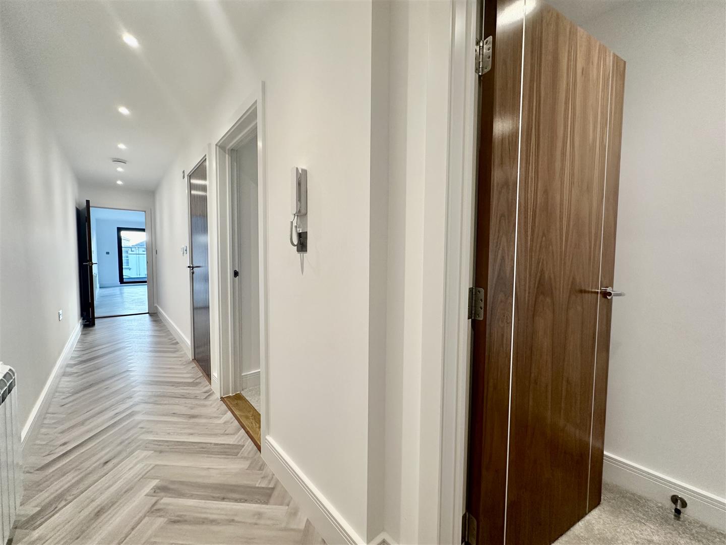 The property briefly comprises entrance hall, open plan living area leading onto south facing balcony, fully fitted kitchen with a separate pantry and utility room, 2 double bedrooms, house bathroom and WC.