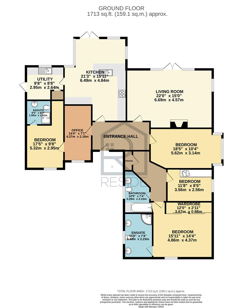 Additional features include a study, a well-equipped utility room, and underfloor heating throughout for year-round comfort.