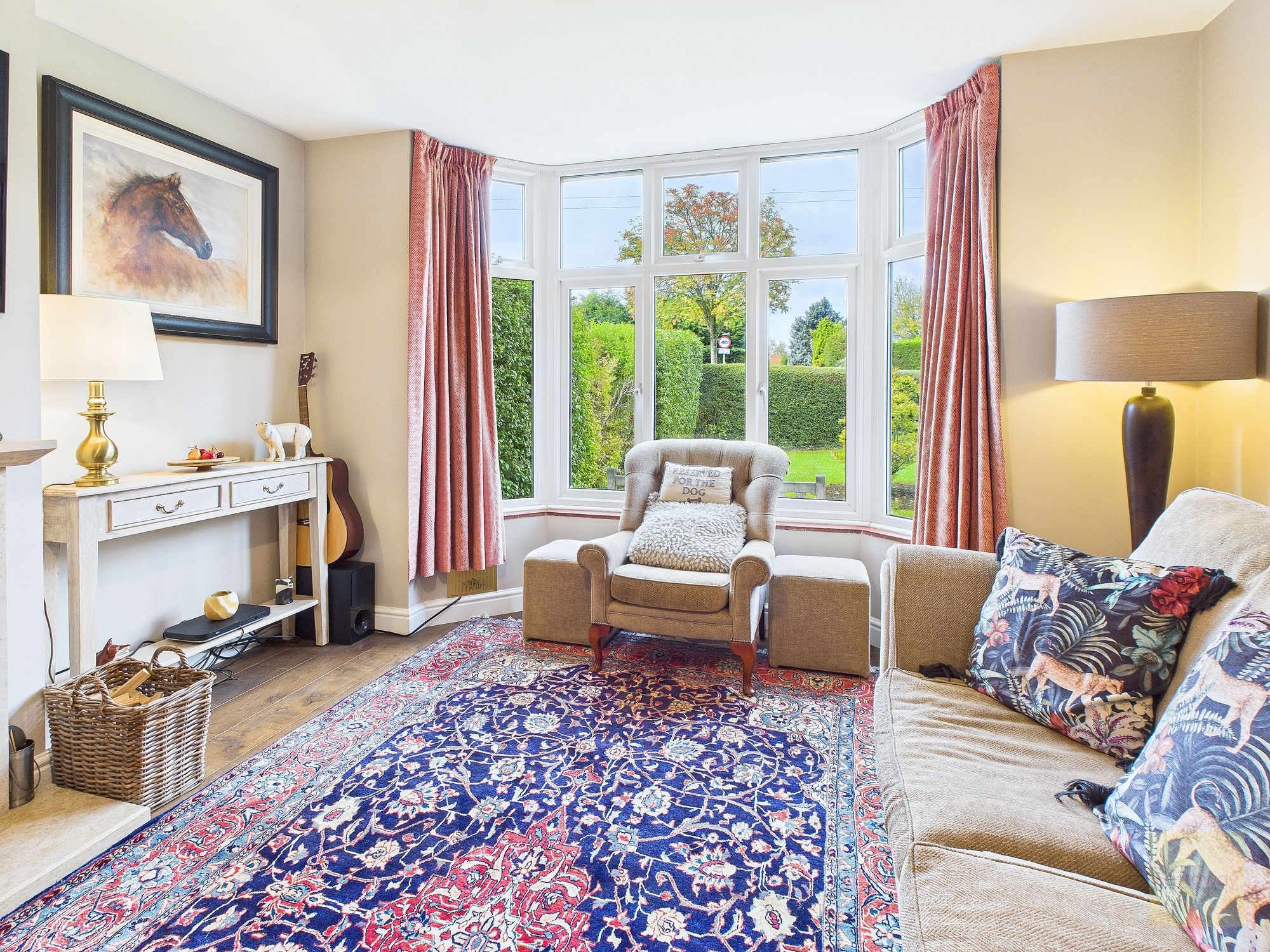 The living room has that timeless 1930s charm, complete with a beautiful bay window that fills the room with natural light and a stone fireplace with a log burner that makes it feel extra cosy through the colder months. It’s the kind of space you can truly relax in, whether you’re curled up with a book, chatting with friends or enjoying a quiet night in.