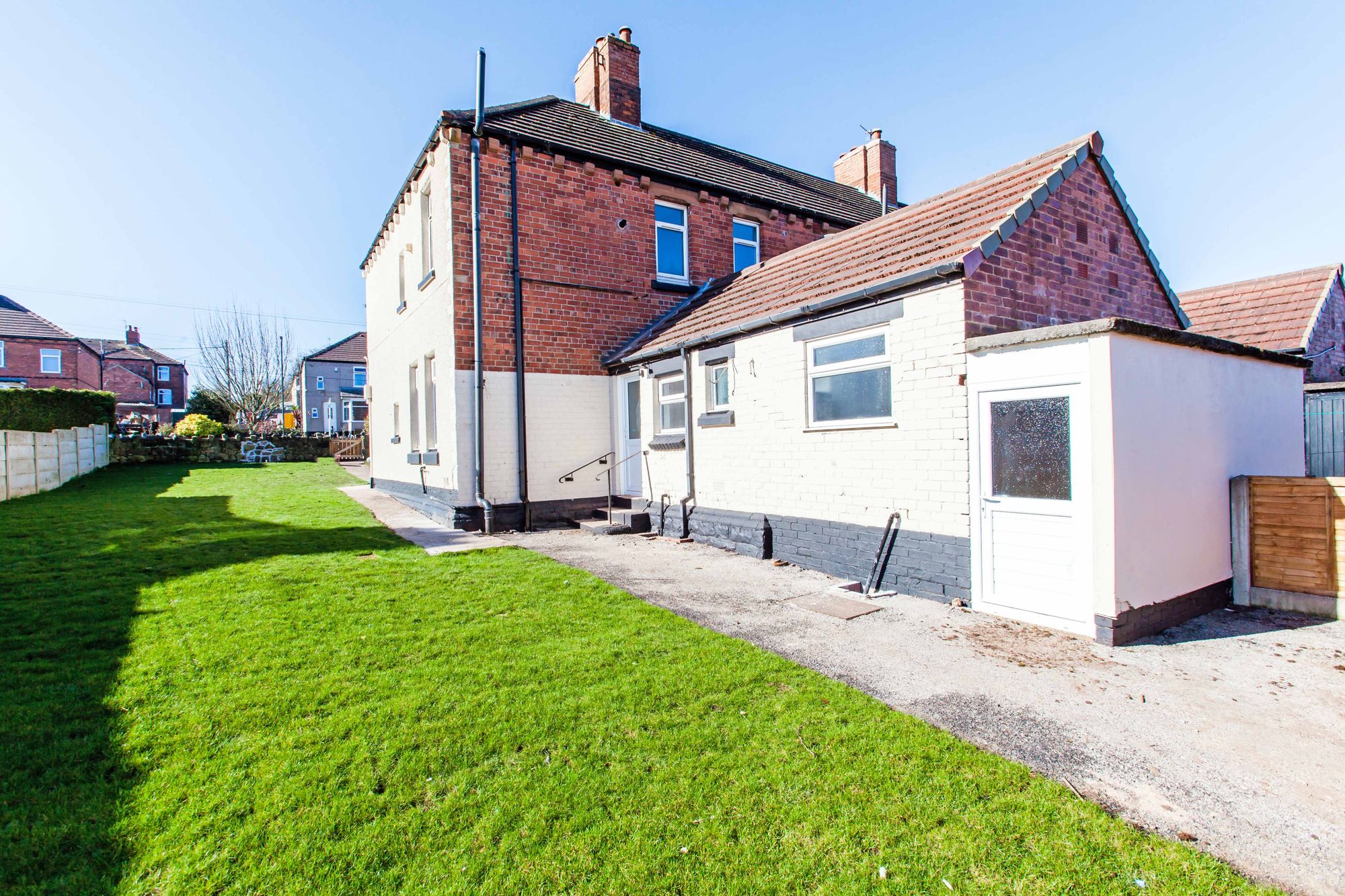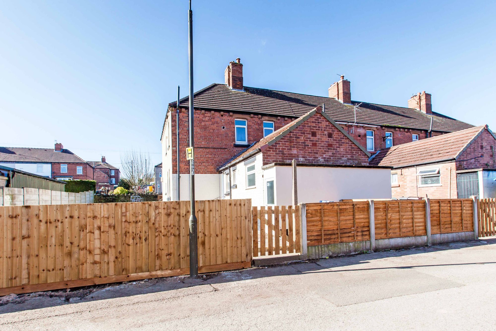 NO CHAIN * POTENTIAL BUILDING PLOT (subject to conditions) This newly renovated 3-bedroom end-of-terrace house offers a fantastic opportunity for first-time buyers or anyone seeking a stylish, move-in-ready home with no upward chain. Would also suit an investor looking to expand their portfolio. Finished to an excellent standard throughout and neutrally decorated, this property is perfect for those looking to move in with ease. The entrance hallway leads to a spacious living room, ideal for entertaining guests, while the large kitchen/diner offers ample worktop and storage space, perfect for family meals or social gatherings. A convenient utility room is situated to the rear, with a rear lobby giving access to a modern bathroom. Upstairs, you’ll find three well-proportioned bedrooms, providing plenty of space for all your needs and potential for a plot subject to the correct planning permissions. Outside, the property benefits from gardens to the front, side, and rear, offering excellent potential. Additionally, there is an outhouse at the rear for extra storage. Located in an excellent area, the property is in close proximity to local amenities and Shirebrook Train Station, making commuting or day-to-day errands incredibly convenient.