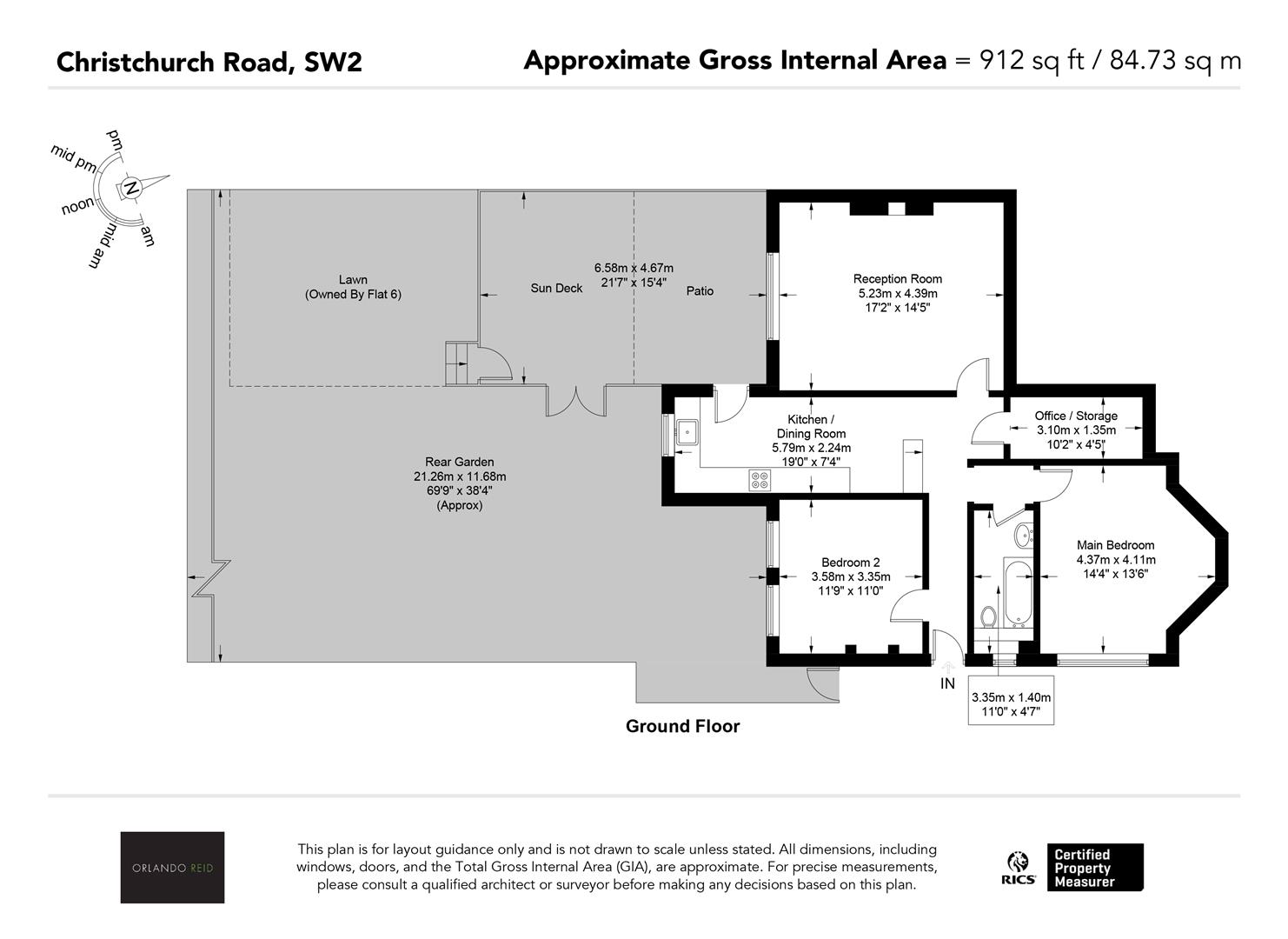 This superb ground-floor maisonette, accessed via its own private front door, is offered in good condition and combines generous proportions with attractive period character. The property features two large double bedrooms, a separate office, and a spacious reception room with working fireplace. A stylish contemporary bathroom and a smart kitchen/diner complete the interior. The kitchen / diner opens onto a private south-facing patio and sun deck, leading to extensive communal gardens that are fully maintained within the service charge.