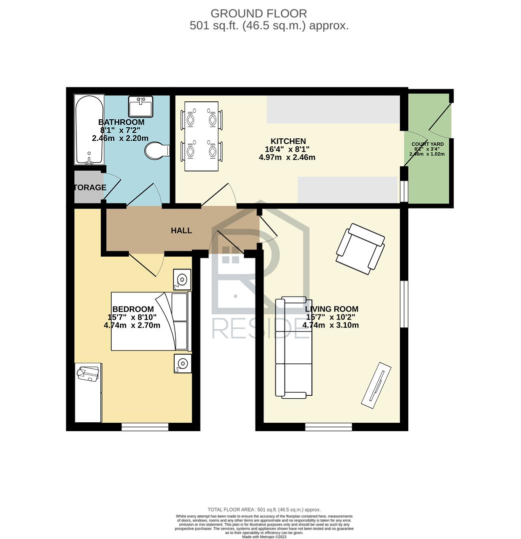 Flat 1 is based on the ground floor and offers the largest living space at 500 SqFt , the flat also benefits a small external court yard off the kitchen. meaning you can access the apartment from two entrances.