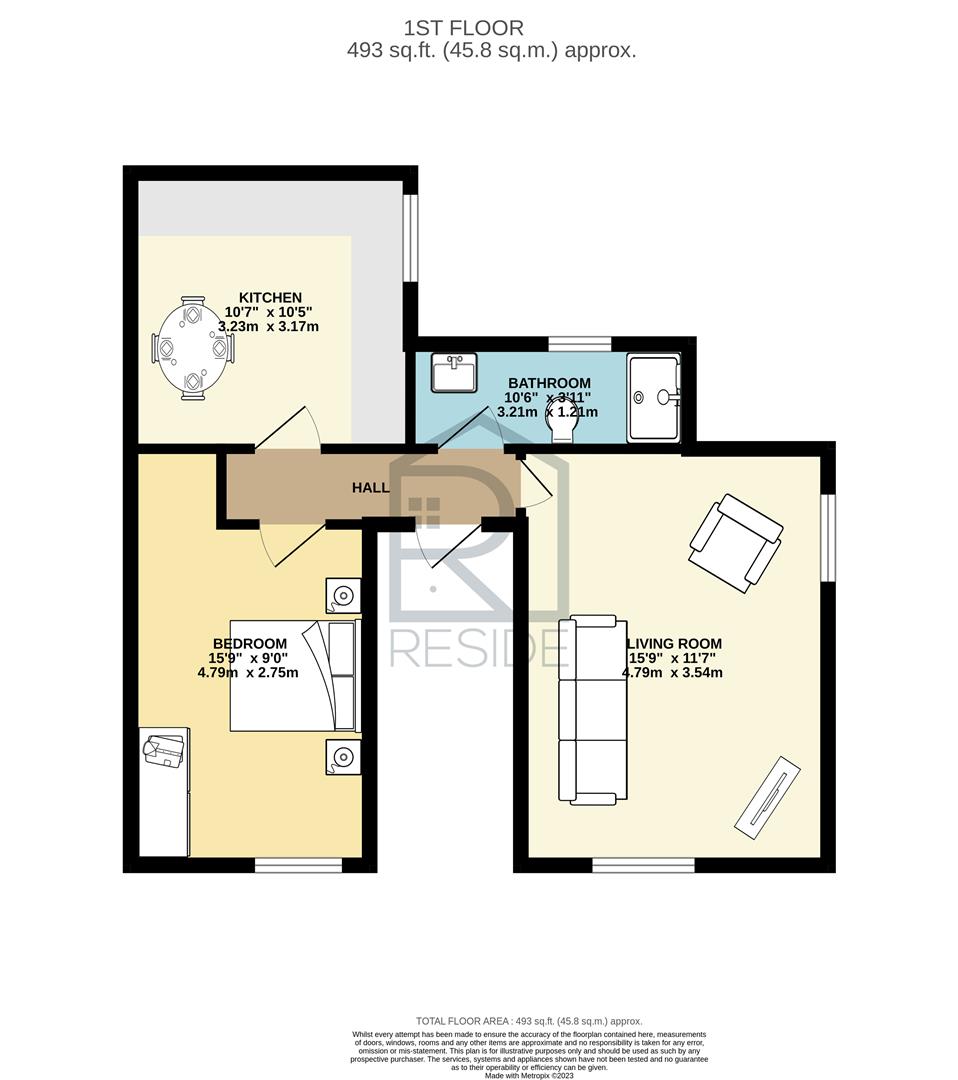 Flat 2 is based on the 1st floor and offers living space at 490 SqFt, benefiting separate kitchen with space for a dining area and large lounge.
