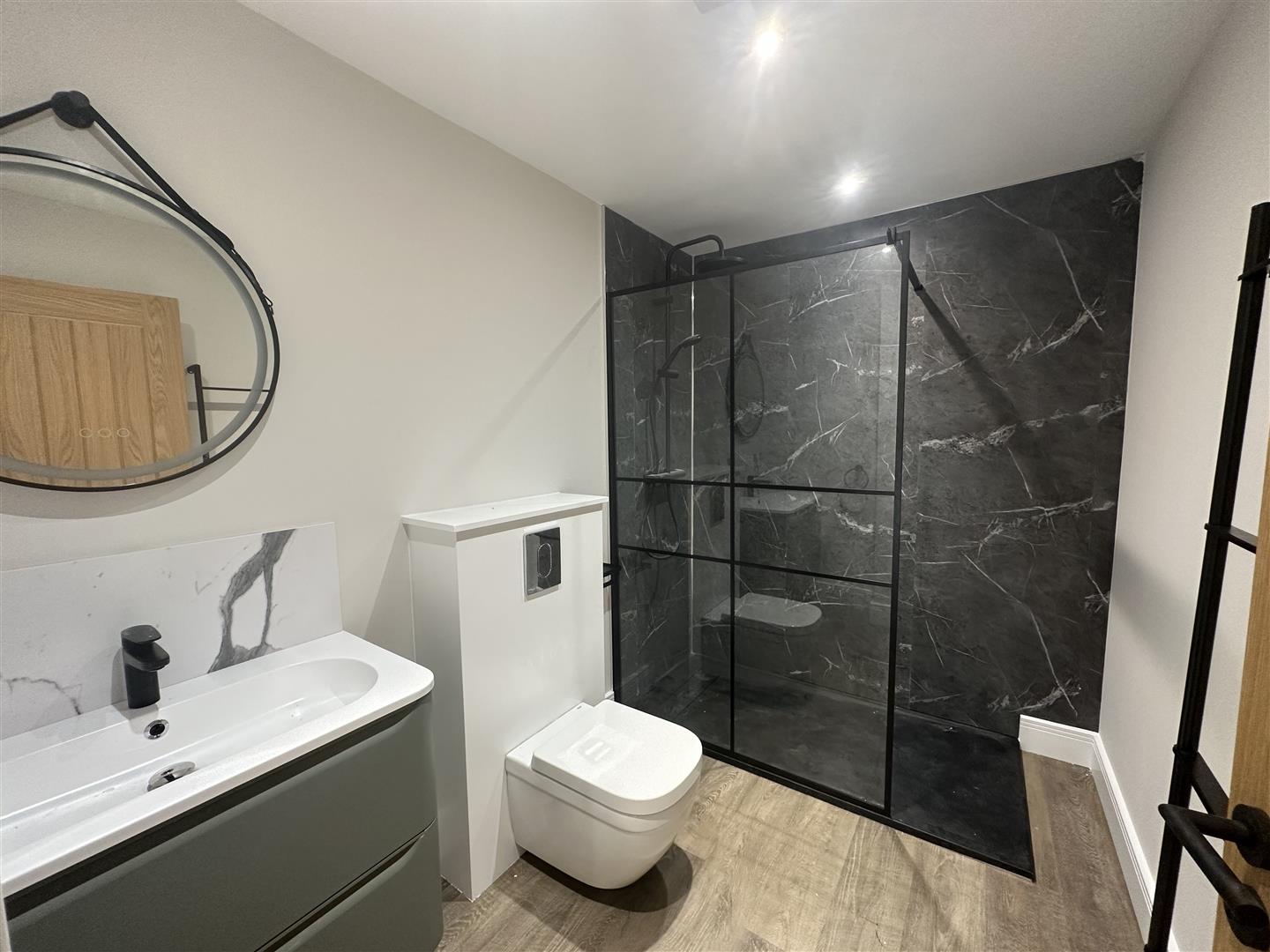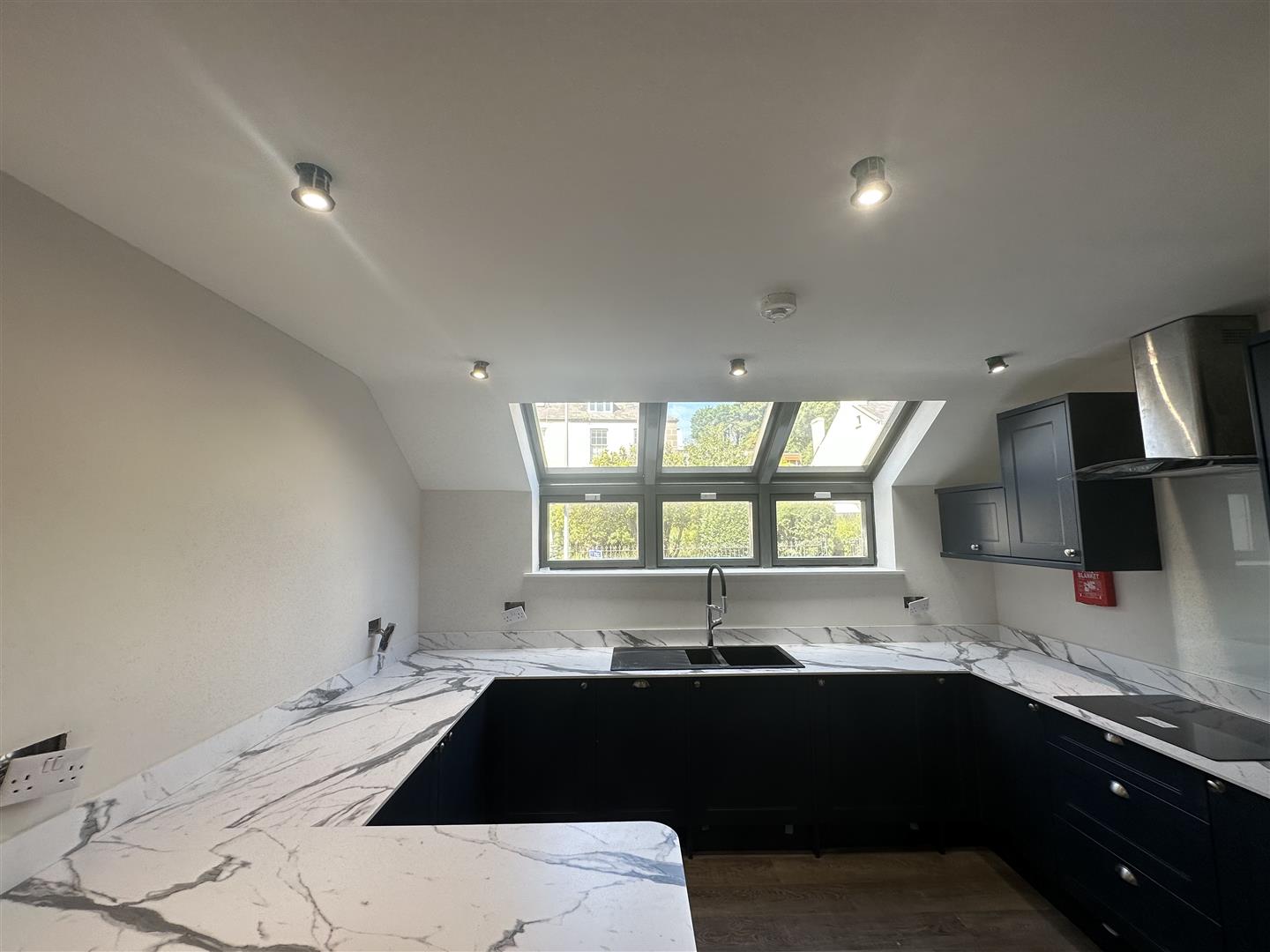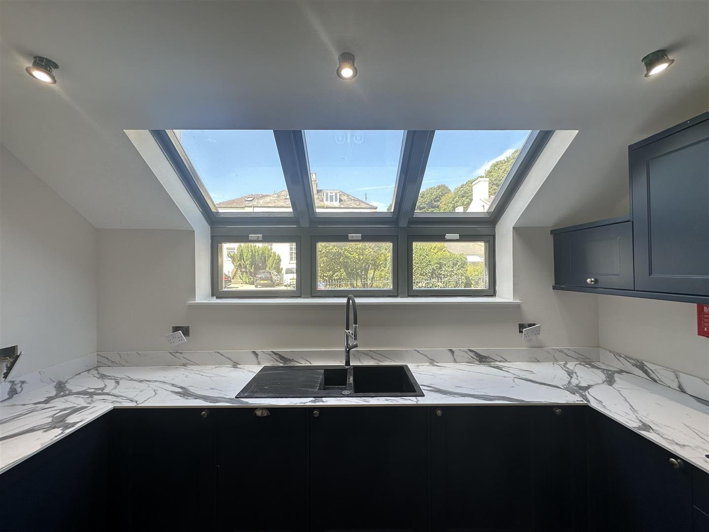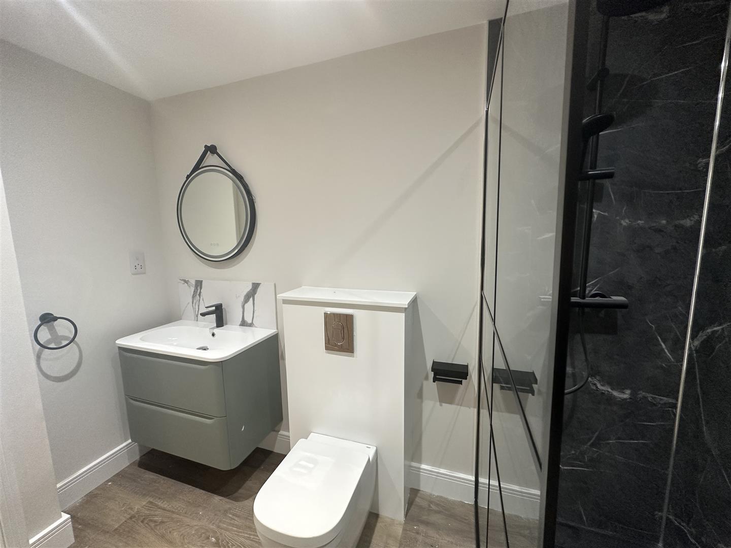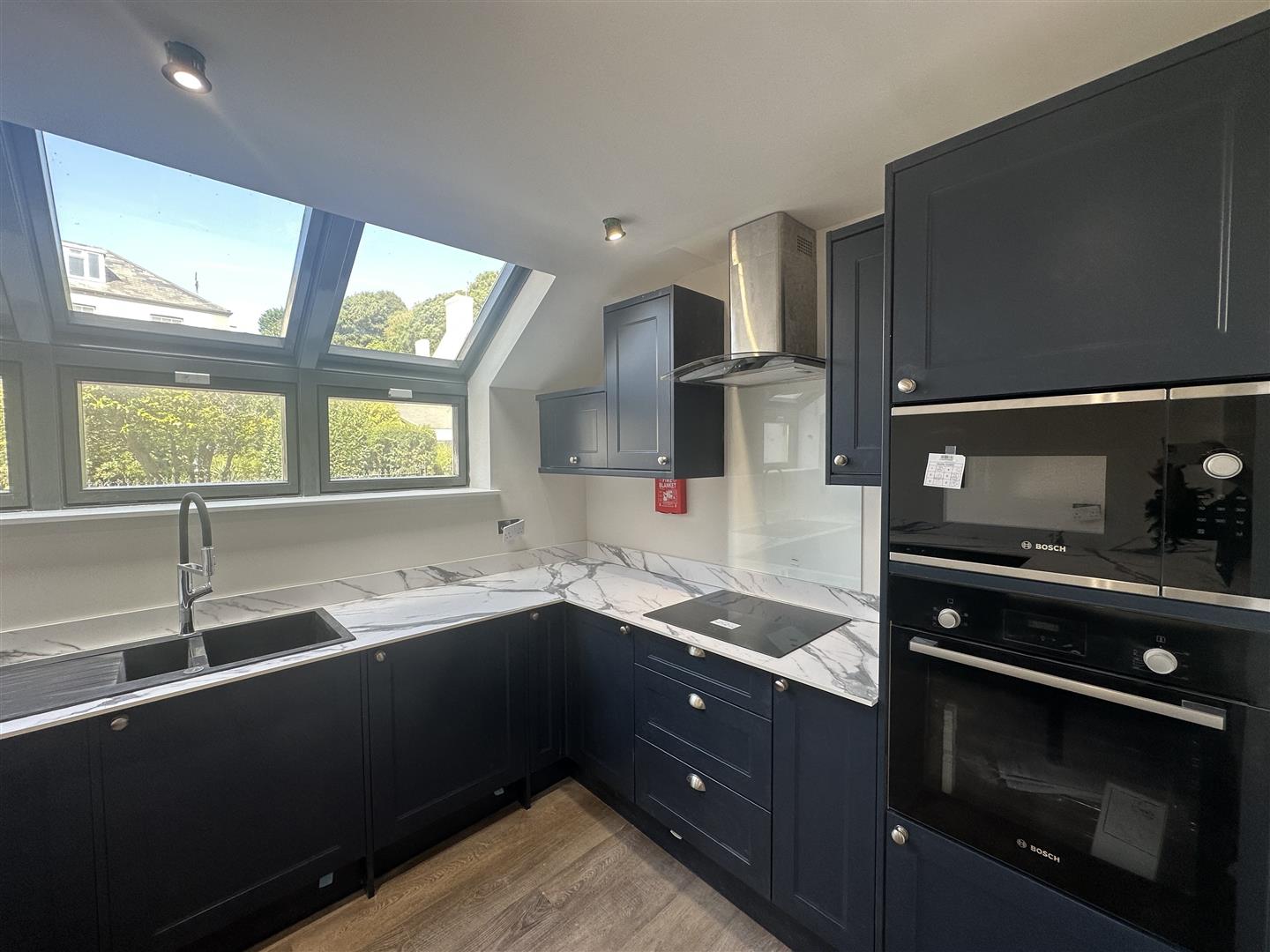 This apartment benefits from its own entrance. Featuring an open plan living space that seamlessly combines the fully fitted kitchen with Bosh appliances, dining and living area. The interiors are crafted with high-quality finishes and modern aesthetics. Large windows flood the space with natural light. There is also storage that is accessible from the living area.