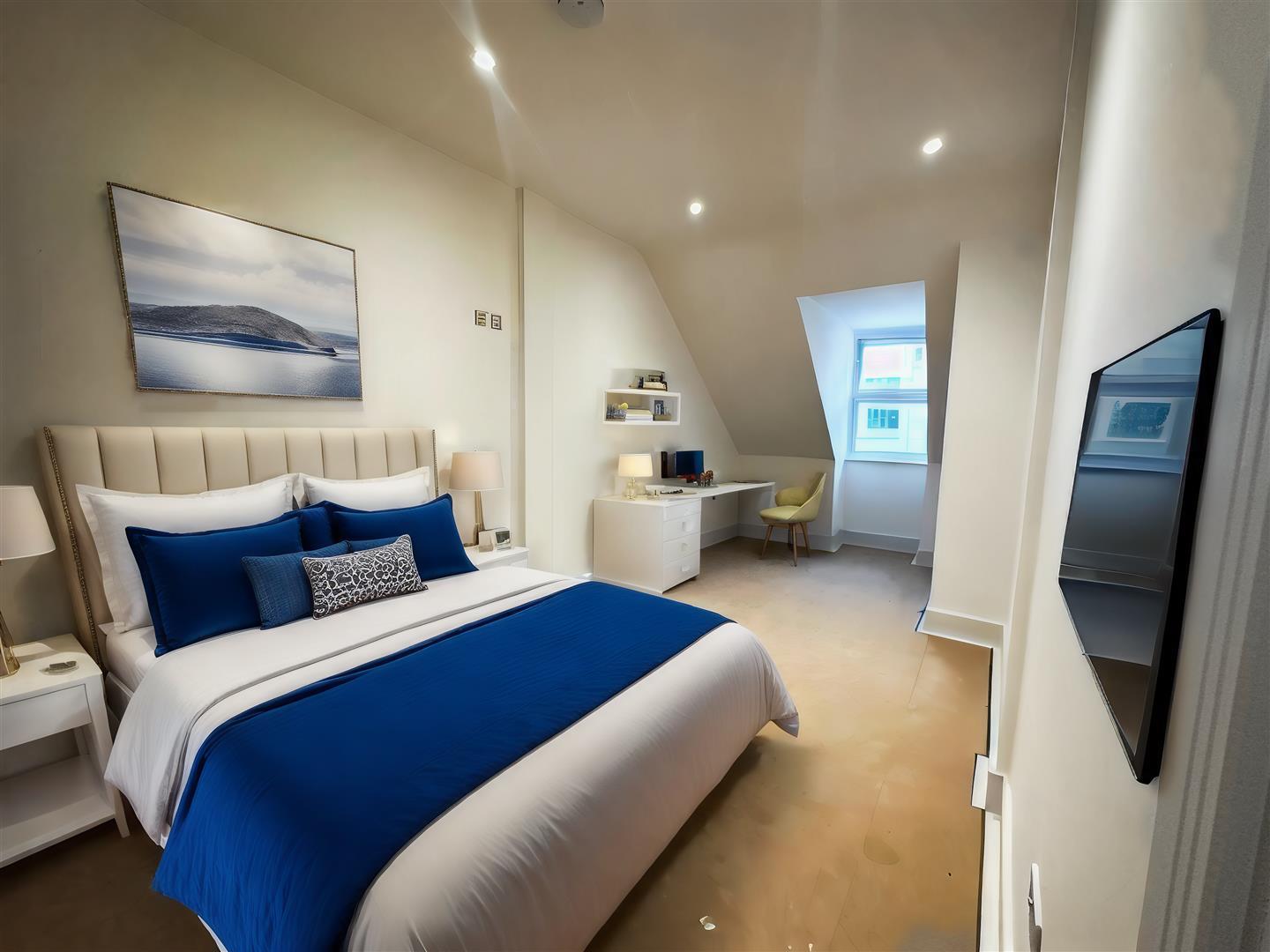 The apartment has a modern house bathroom and two double bedrooms, one of which benefiting an en-suite.