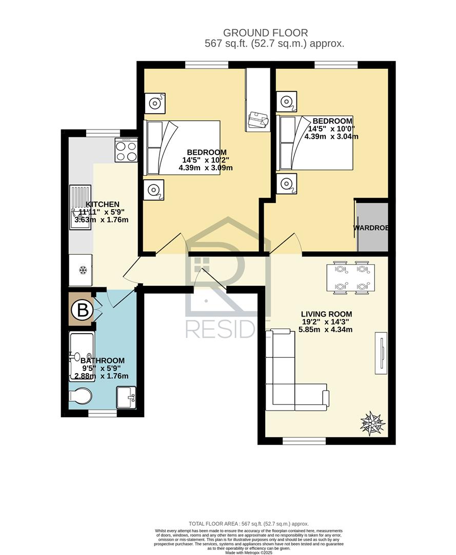 Both bedrooms are generously sized doubles, with the principal bedroom benefiting from built in wardrobes.