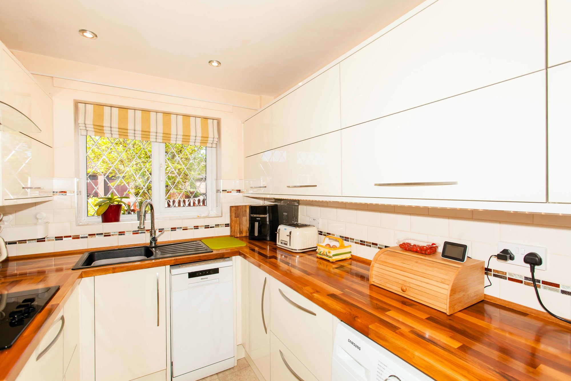 • Modern Kitchen with Slow Closing Units, Down Lighting, Ample Hard Wood Work Tops Plus Electric Oven and Gas Hob