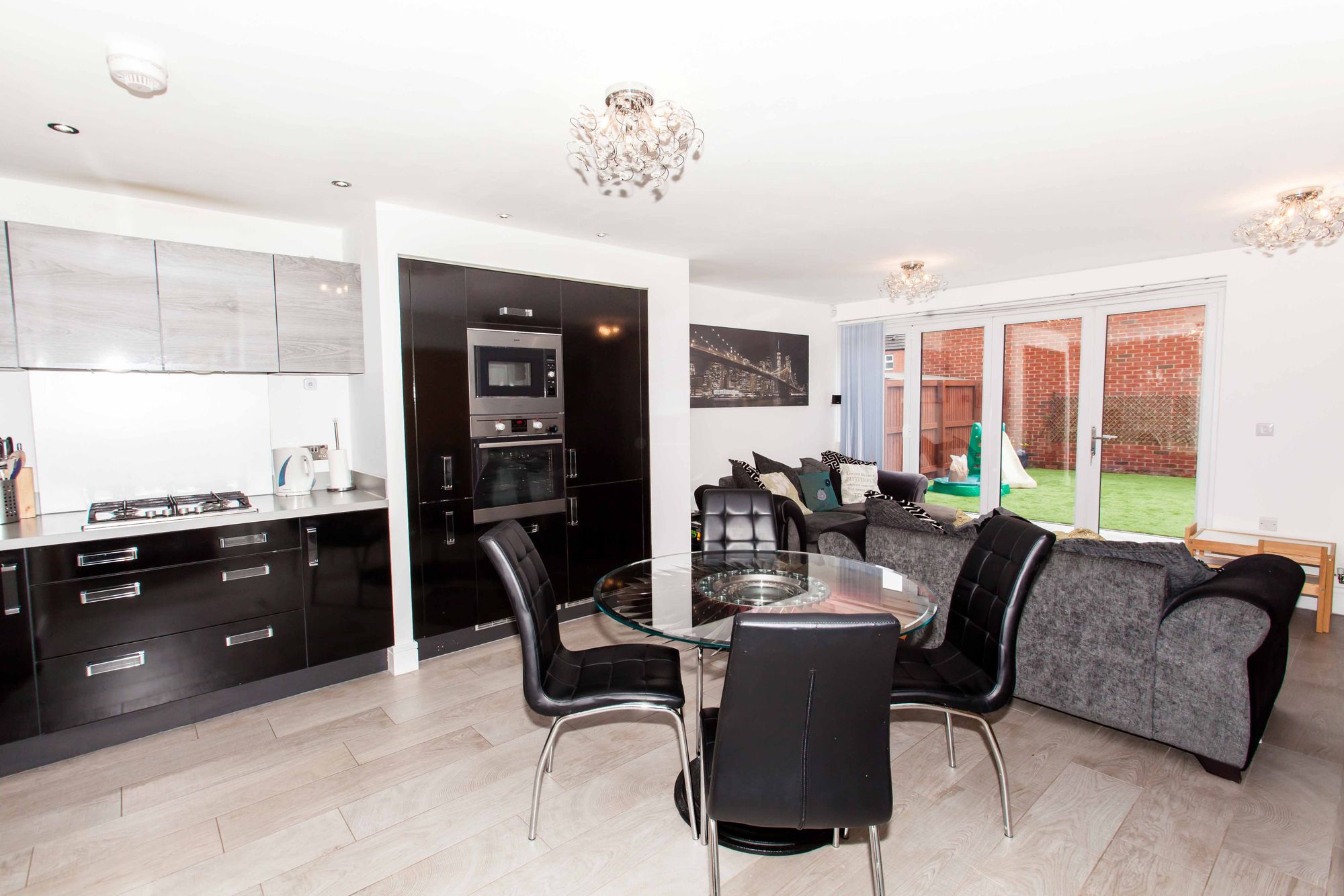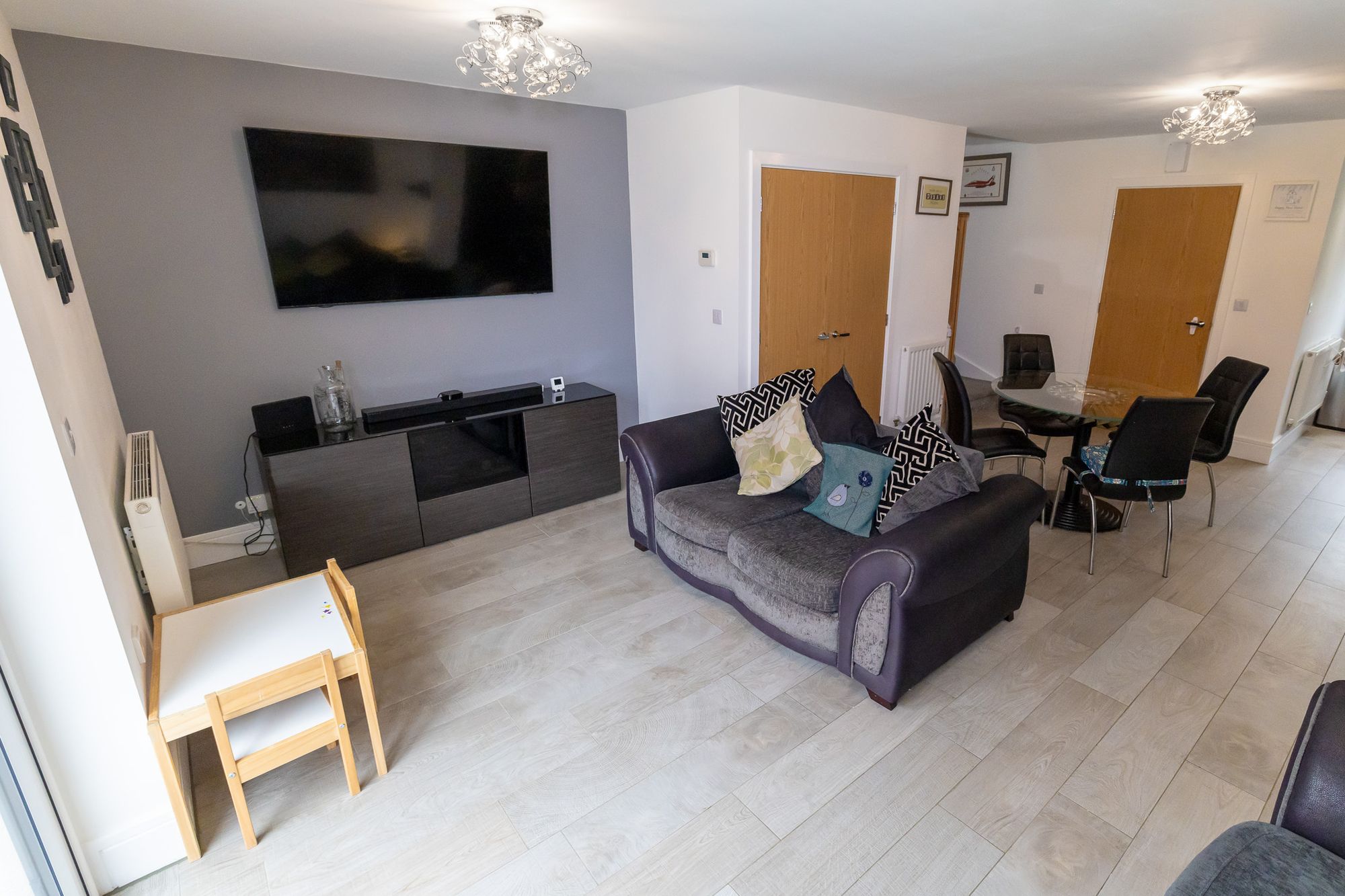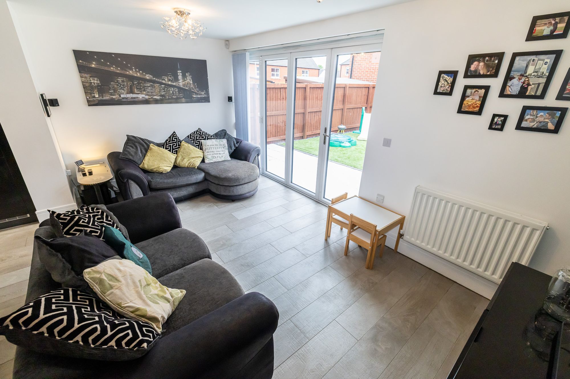 This beautifully presented three-bedroom detached home is ideal for a growing family and is positioned on a generous corner plot, offering both front and rear gardens. From the moment you step inside, you’re welcomed by a bright and spacious open-plan living area. Bifold doors open seamlessly onto the enclosed rear garden, creating the perfect indoor-outdoor flow, ideal for entertaining or unwinding in comfort. The contemporary kitchen is designed for modern living, complete with integrated appliances, generous worktop space and a clean, stylish finish. A handy utility area and a downstairs W/C add extra convenience for busy family life. Upstairs, the home continues to impress with three well-proportioned bedrooms. The principal bedroom benefits from built-in storage and a sleek en-suite shower room, while the remaining bedrooms are served by a modern family bathroom. Located close to local schools, amenities, and excellent commuter routes, this home also boasts beautiful countryside walks and scenic views right on your doorstep, offering the perfect balance between town and country living. The rear garden has been thoughtfully landscaped and recently upgraded with high-quality, low-maintenance artificial turf and a large patio area, perfect for summer barbecues or evening relaxation. With built-in garden lighting and weatherproof power outlets, it’s a fantastic space to enjoy day or night, all year round. Finished in neutral tones throughout and maintained to a high standard, this move-in-ready home is an exceptional opportunity to enjoy space, style and comfort both inside and out.