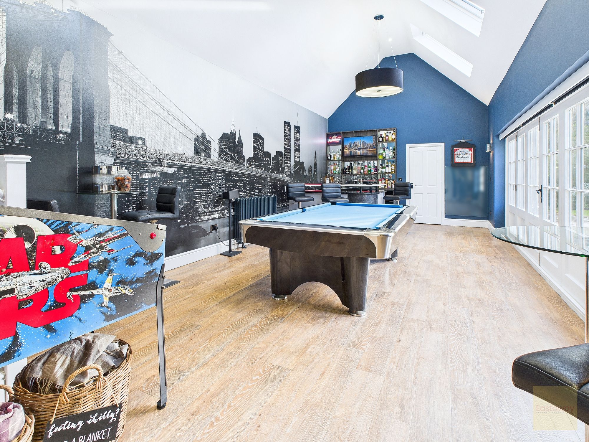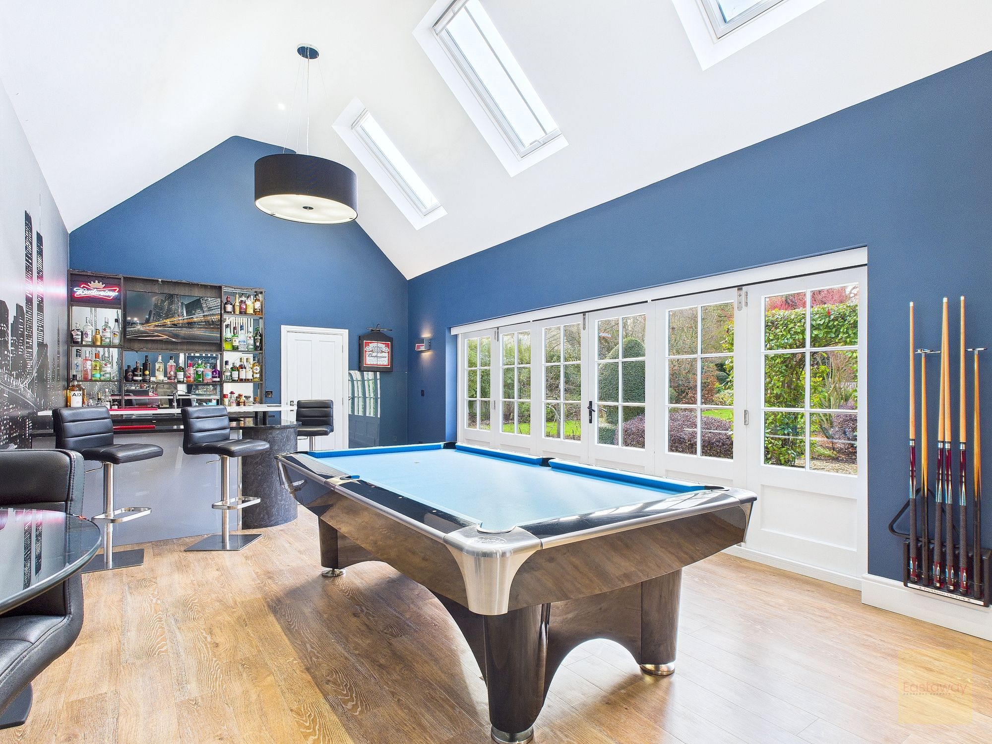 And then there’s the separate entertainment block, which adds a whole other layer to this home. Fully renovated and beautifully styled, it includes a games room with bar area, a cinema room, and a gym, all opening onto a patio. With its own heating system, bathroom facilities, and high speed connectivity, it works just as well for entertaining as it does for everyday use. It’s the sort of space that makes this house feel genuinely lifestyle led.