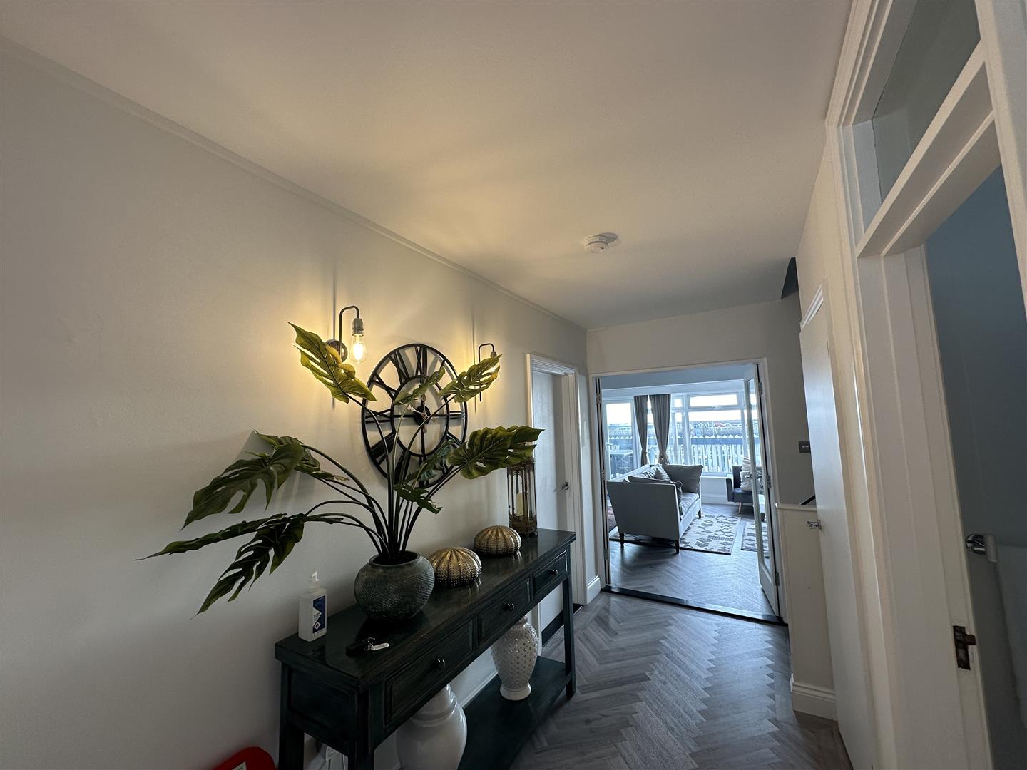 Tastefully styled throughout, the property combined coastal charm with modern comfort. Upon entering you are welcomed by a bright and airy hallway featuring a convenient WC and ample storage. The heart of the home is the impressive open-plan kitchen, dining and living area, where large windows frame uninterrupted views of Gorey Beach with double doors leading directly onto a sunny terrace.