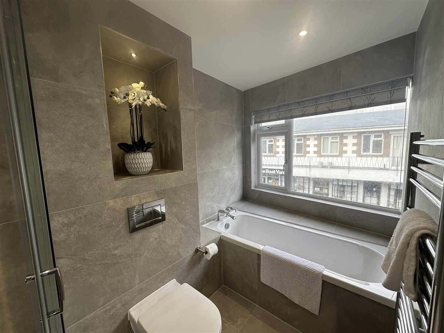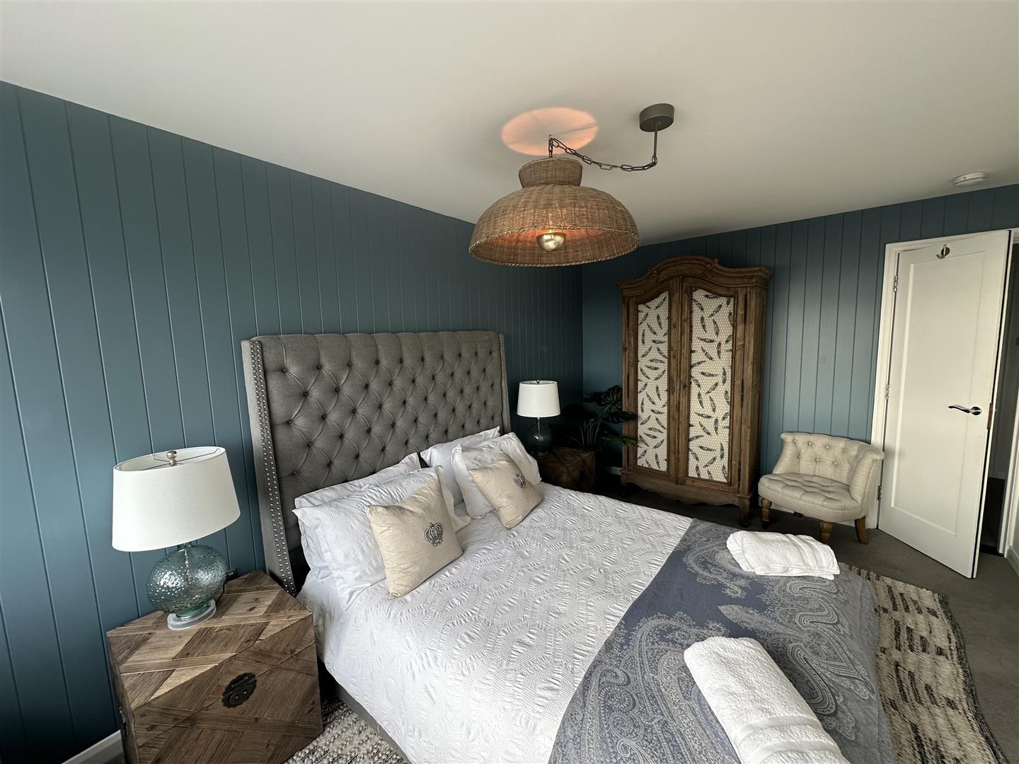 Upstairs, the property boasts three well-appointed bedrooms, one of which has a modern en-suite bathroom, all filled with natural light. The main house bathroom is stylishly finished and offers views of the surrounding area.