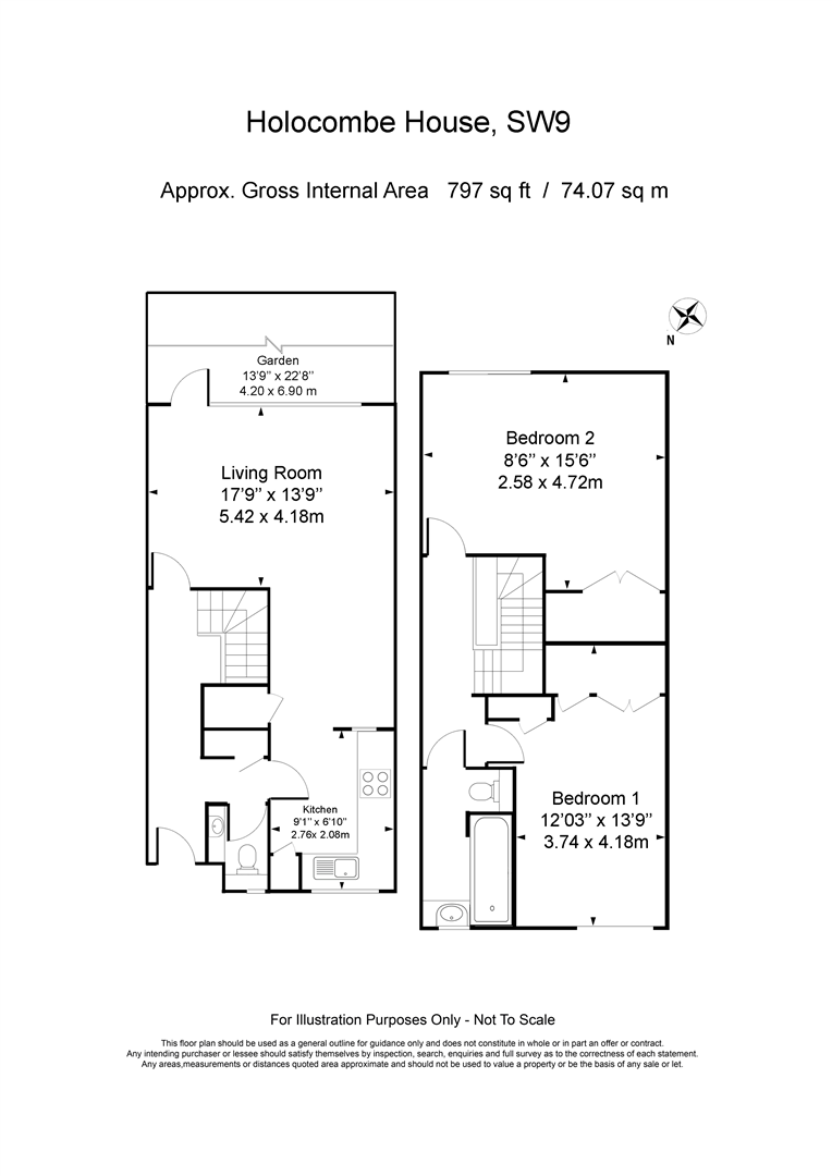 This two double bedroom maisonette in Clapham North is available for rent. The property offers a spacious living room which leads to a paved garden and to a modern fitted kitchen along with downstairs w.c on the ground floor and two double bedrooms with ample storage space and bathroom on the first floor. Other benefits include gas central heating, double glazed windows and it's own front door.