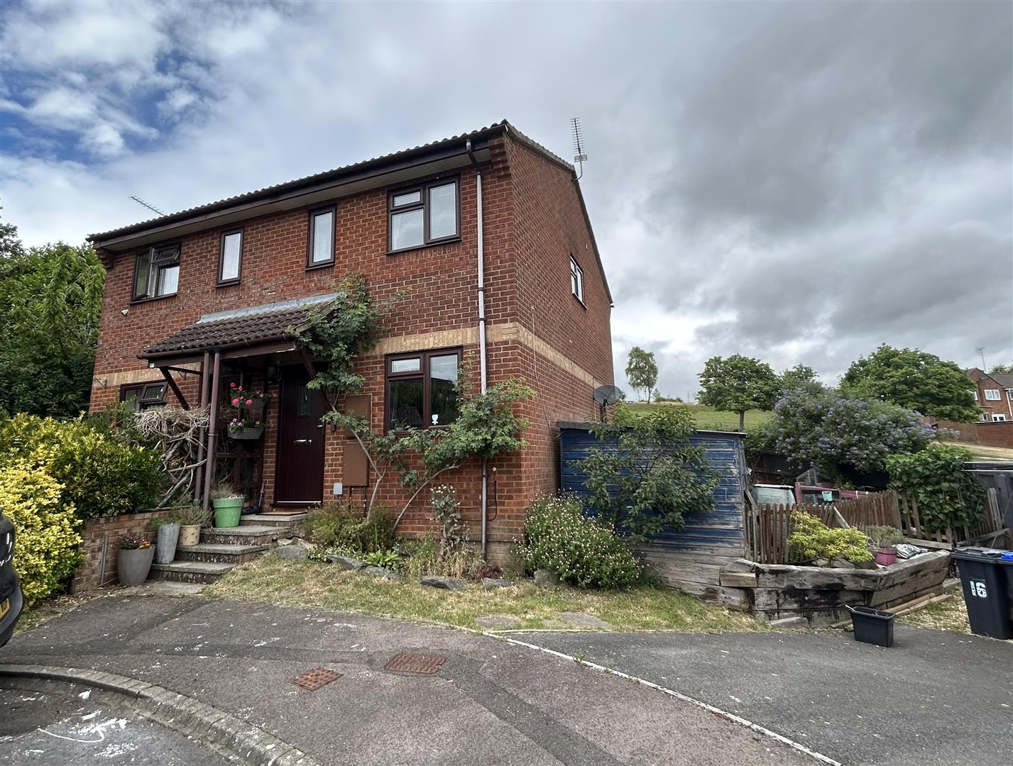 The property is situated in a cul-de-sac with off road parking for one to the side of the house on a shared driveway, and on road parking available to the front of the property.