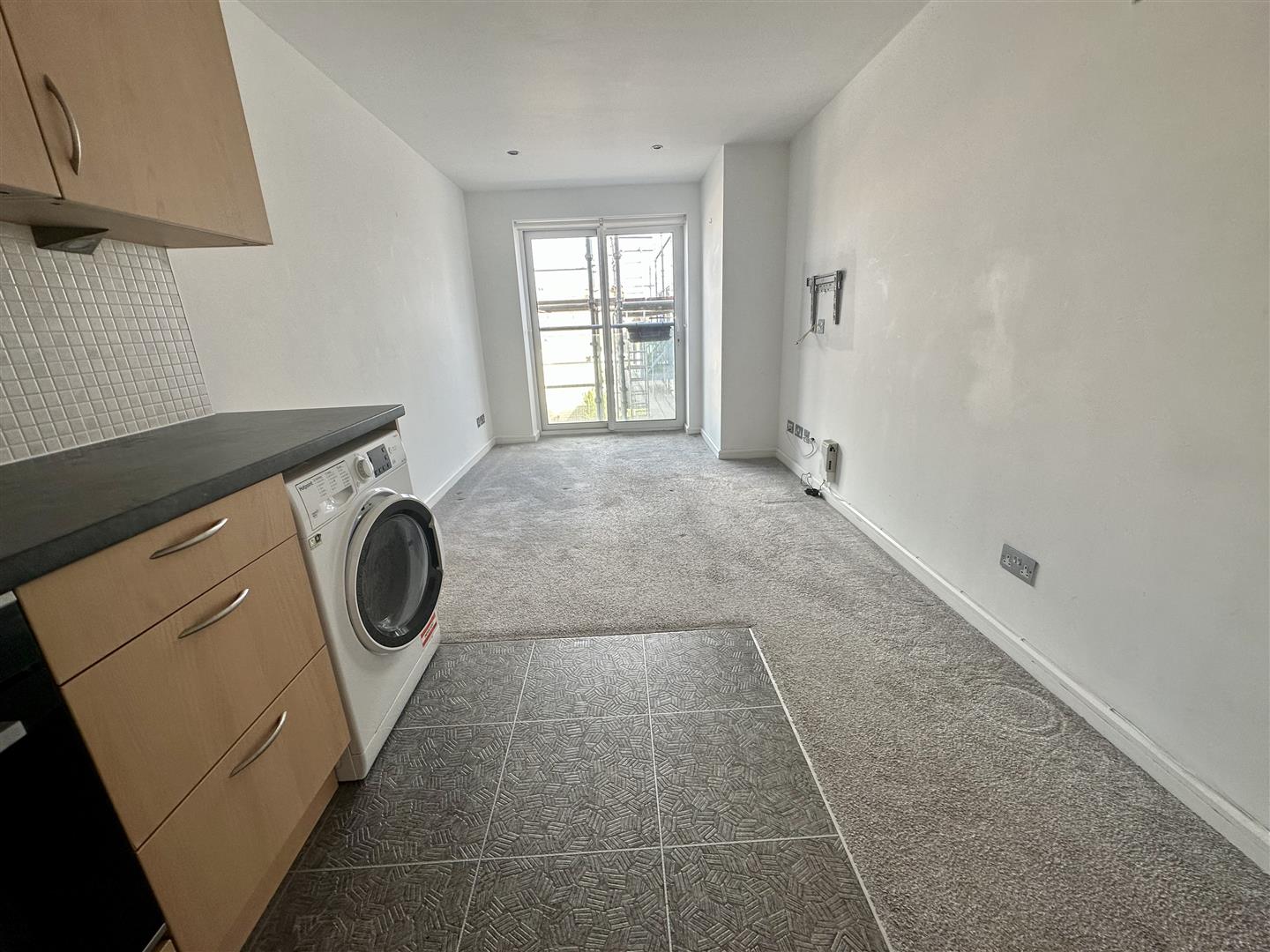 On entrance you are welcomed with an open plan kitchen, dining and living area with a Juliette balcony off the living space. There is a separate double bedroom and house bathroom.