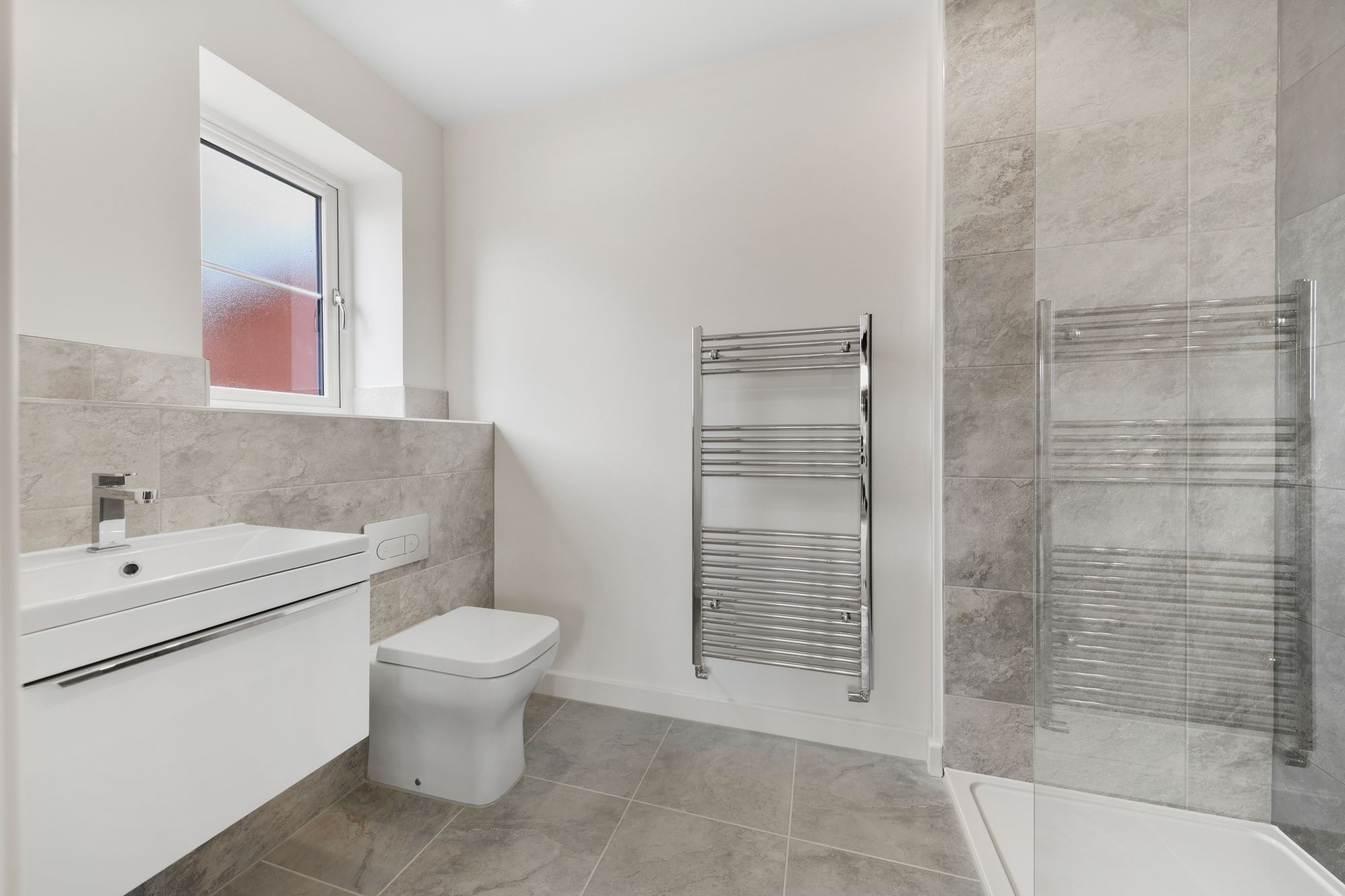 Upstairs, the principal bedroom boasts a luxurious three-piece en-suite, offering a private retreat. A second double bedroom and two well-proportioned single bedrooms provide flexible living space – ideal for children, guests, or home working. The beautifully finished family bathroom includes a stylish four-piece suite and contemporary tiling.