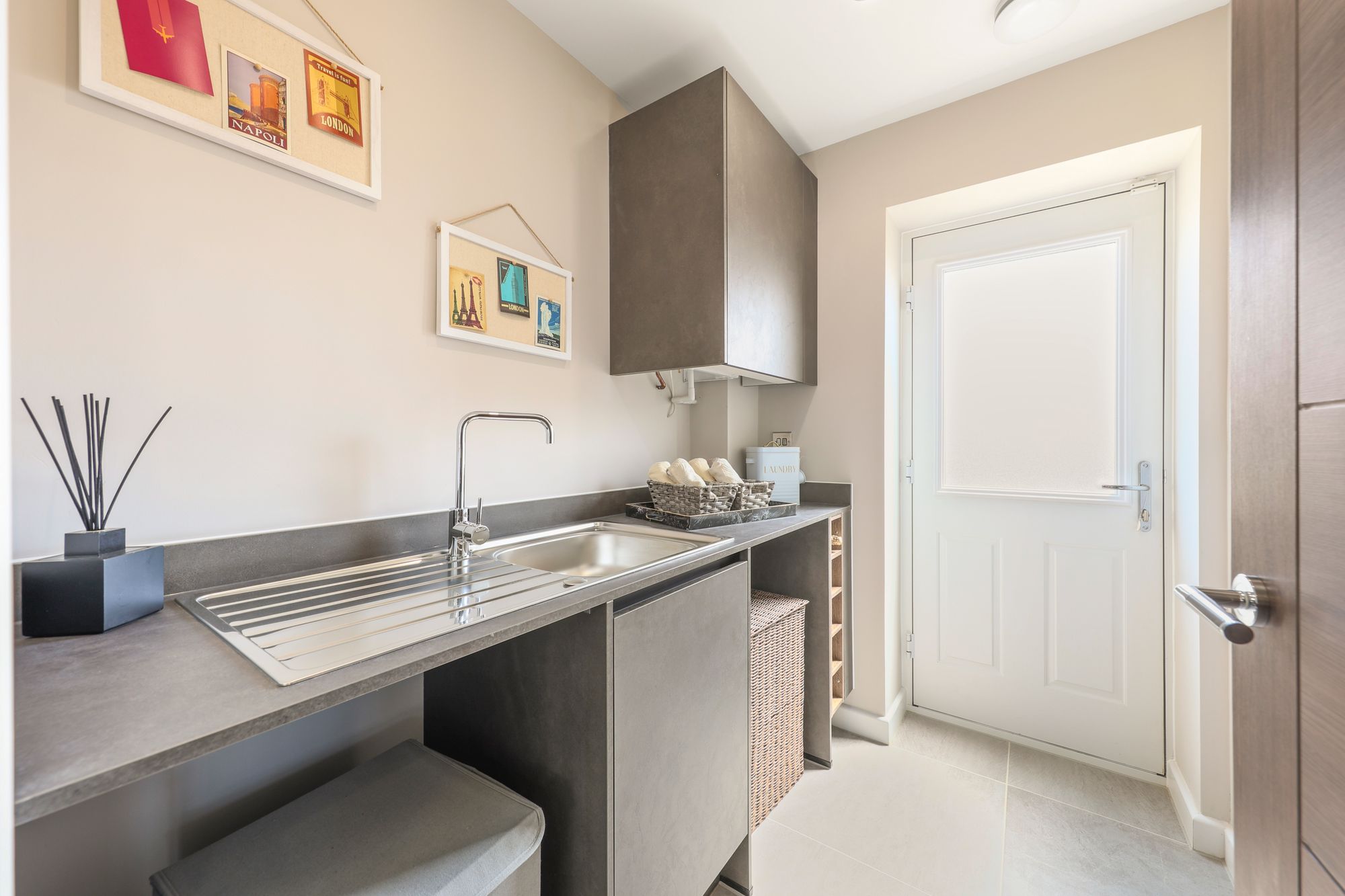 Upstairs, the Kenmare offers two generous double bedrooms and two single bedrooms. The principal bedroom includes a sleek three-piece en-suitebathroom, complete with premium Porcelanosa tiling for a fresh, modern feel. A luxurious four-piece family bathroom adds further comfort for a growing family.