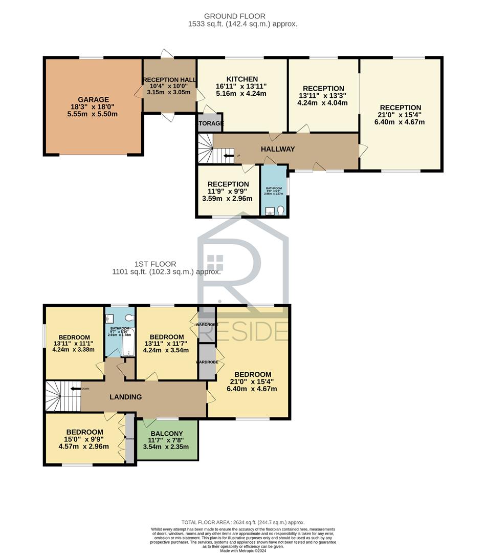 Internally the ground floor offers three reception spaces, kitchen and w/c with large integral garage. Upstairs has 4 double bedrooms, house bathroom and westerly facing balcony.