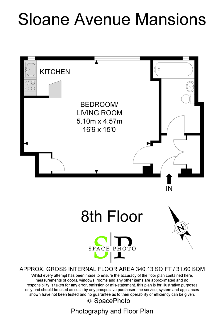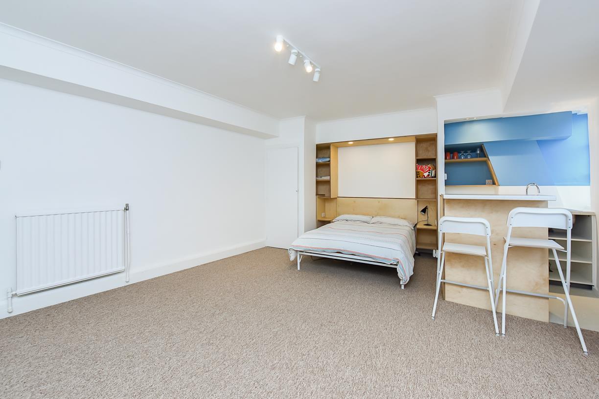 A large, bright and spacious (32m2) 8th floor flat on the best side of Sloane Avenue Mansions with views over central London. This flat feels larger than comparable 1 bed due to its fully open plan layout. By far the largest studio layout in the block.