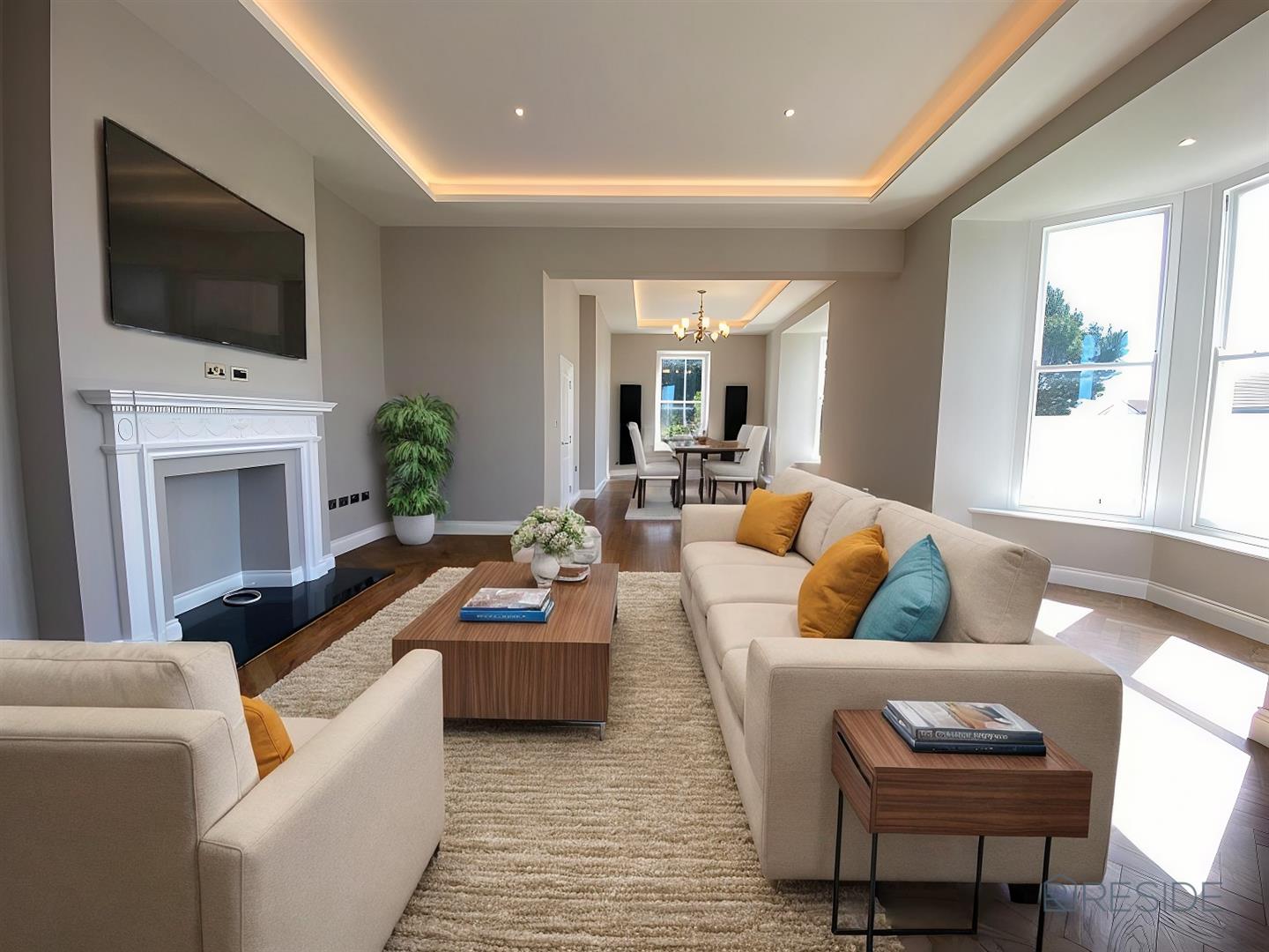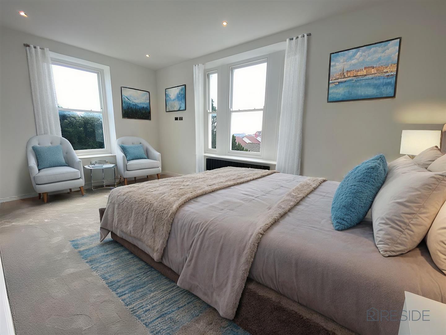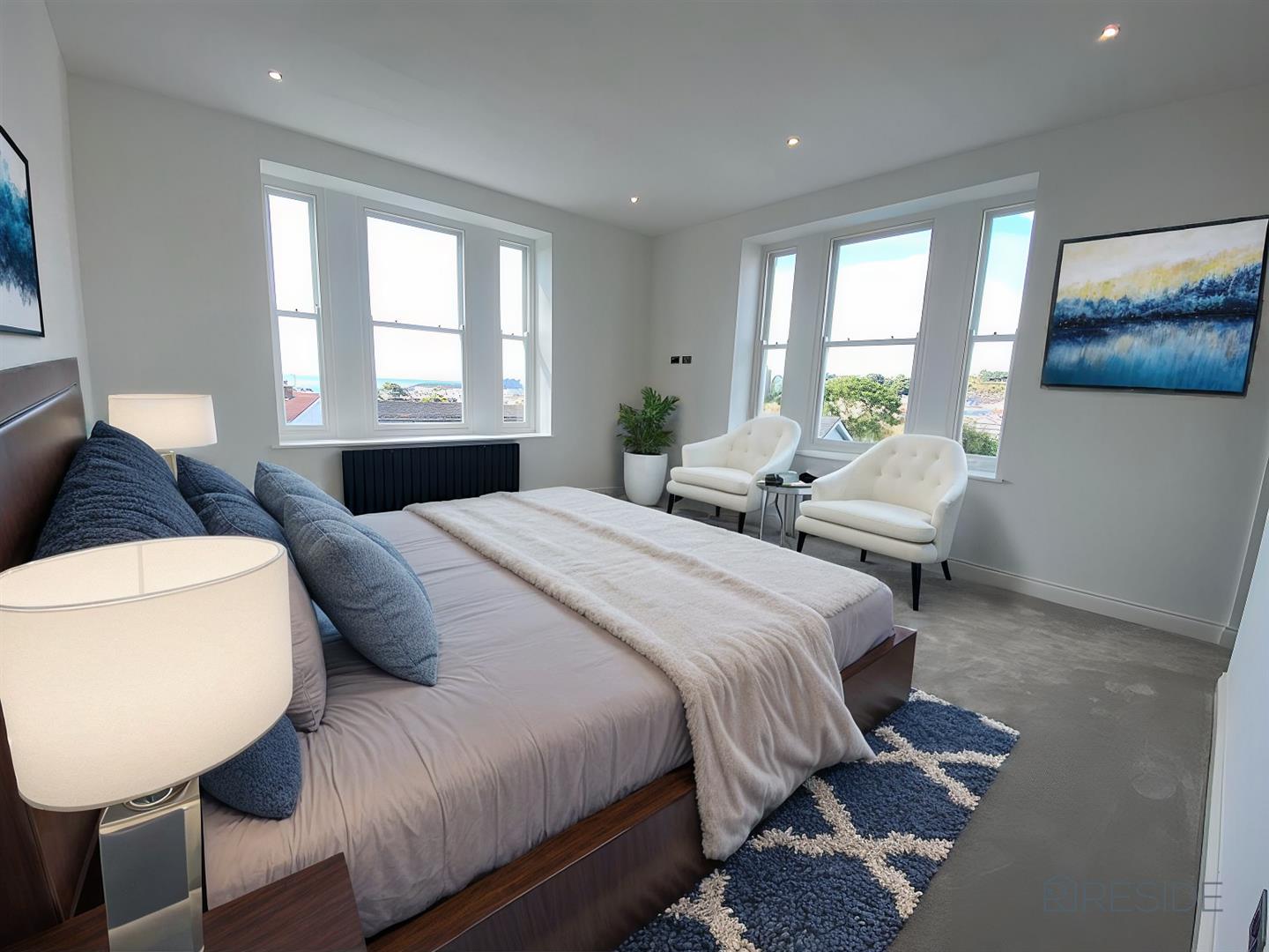 On the first floor there are three double bedrooms, including the master suite with a dressing area and en-suite and two further bathrooms and a utility room. The second floor features a further two bedrooms with an en suite and plenty of storage. Stunning sea views are enjoyed from multiple rooms.