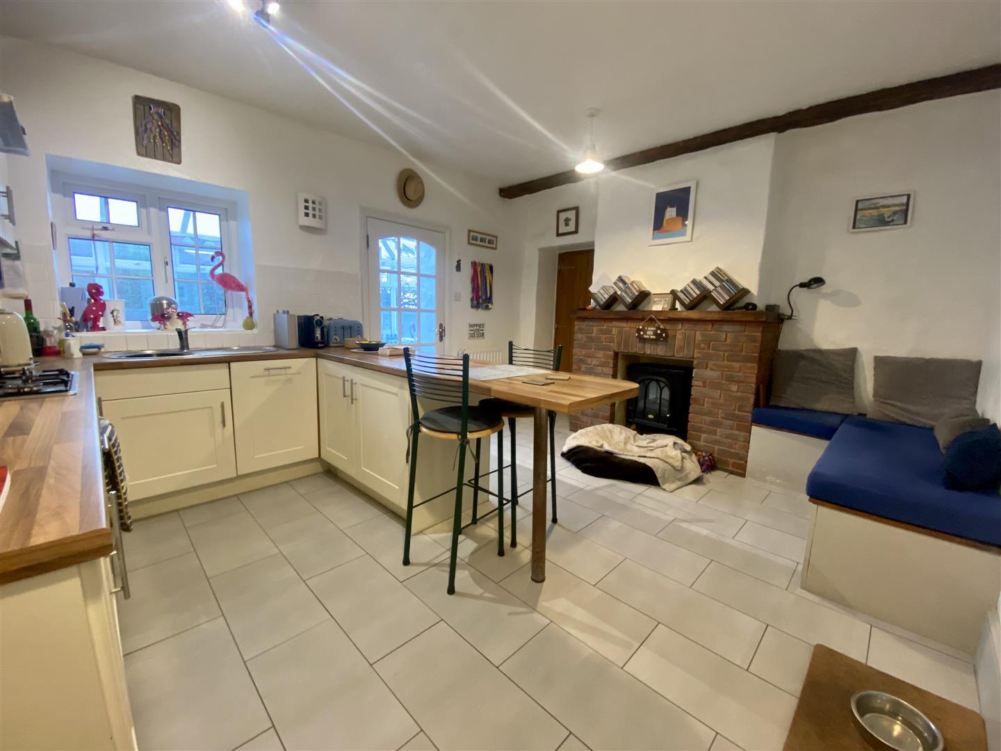 This cosy home offers plenty of character. The ground floor comprises; spacious living room with fire place, kitchen with built in appliances, utility and showroom. Off the kitchen benefits a large bright sun room which opens up onto the pretty rear garden. Upstairs comprises two double bedrooms with one benefitting an en-suite.