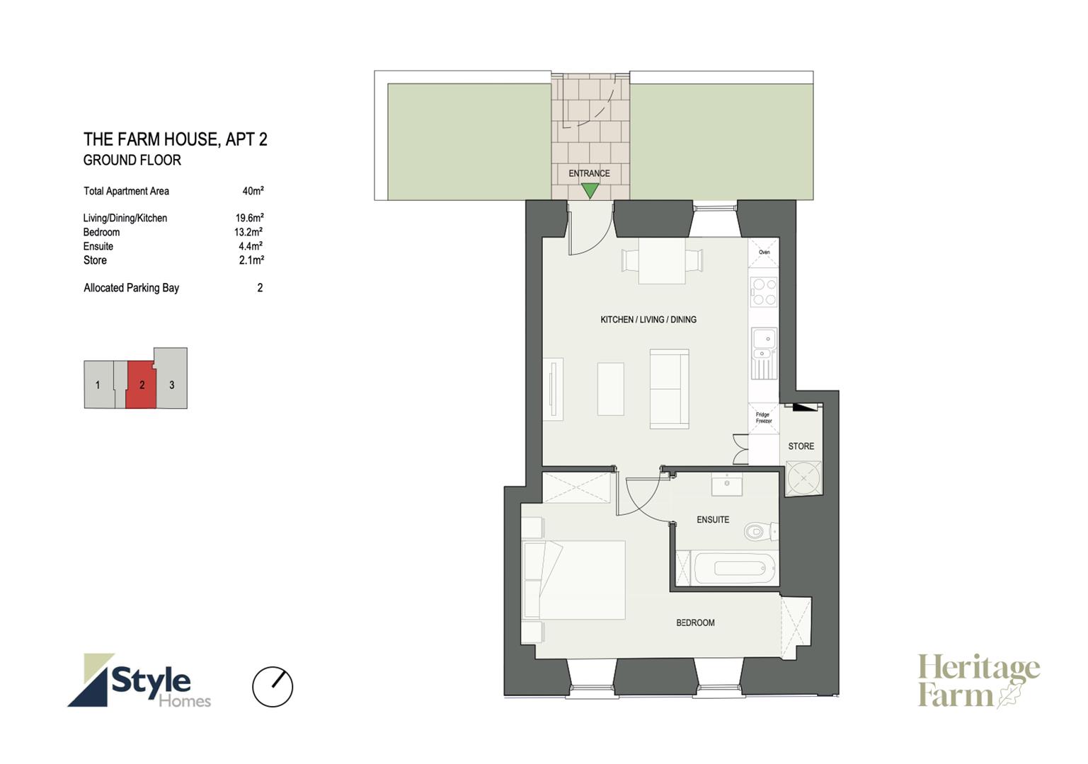 The Farm House 2 is a beautifully designed one-bedroom apartment that blends character and contemporary comfort. With private access, you are welcomed into a spacious open-plan kitchen, living and dining area completed with Laura Ashley Kitchen, high-spec Miele appliances, and elegant Pietra worktop. There are large windows framing views of the beautifully maintained communal garden.