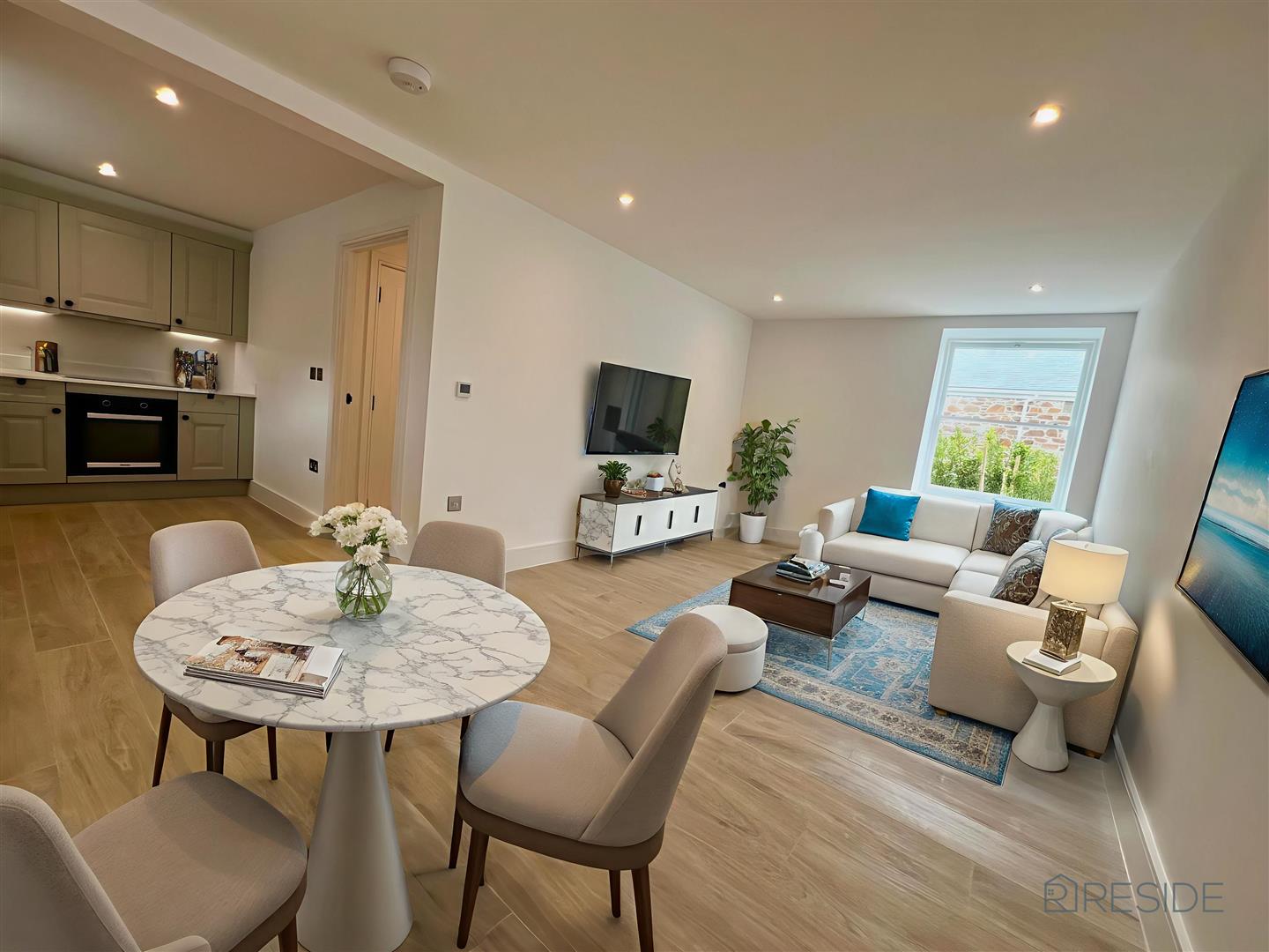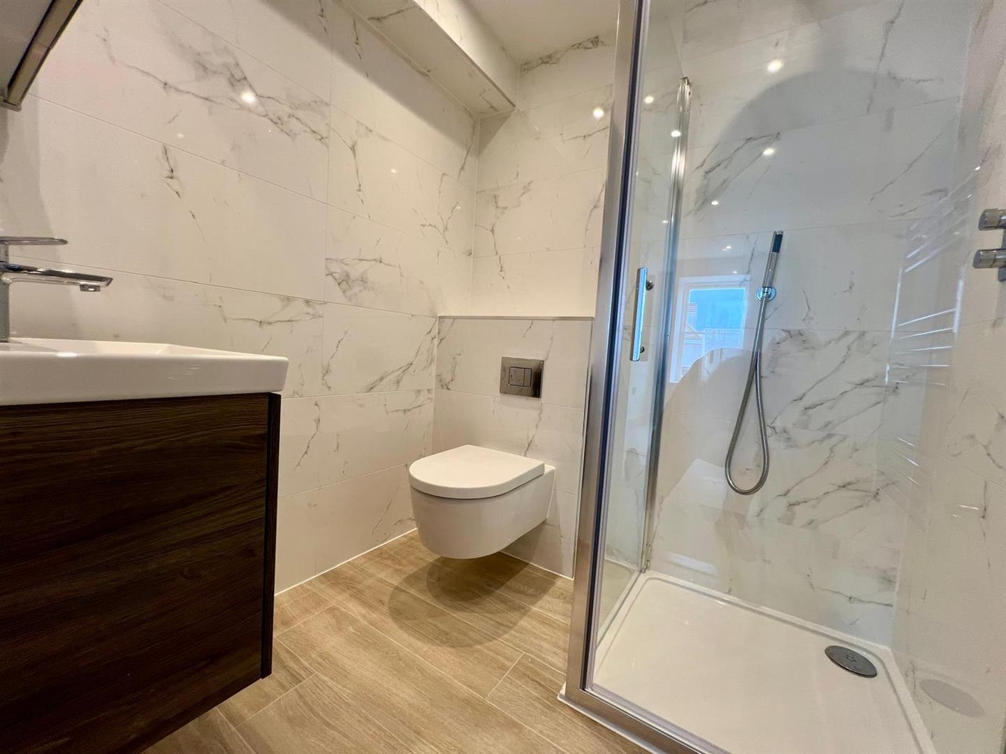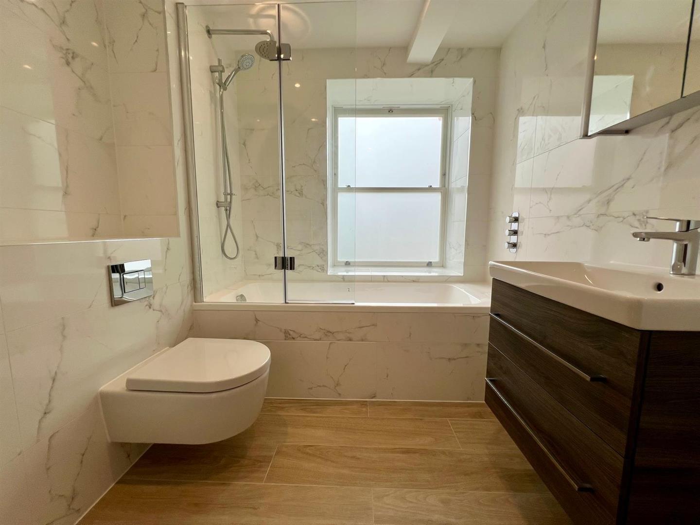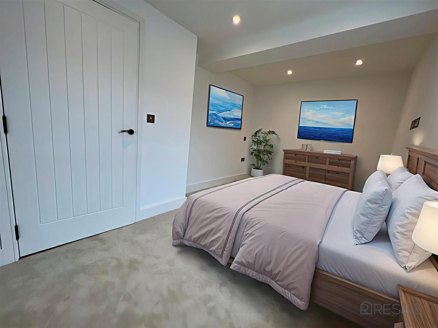 Upstairs, you will find two well-appointed bedrooms. The generous master suite boasts ample floor space and a sleek en-suite bathroom. The second bedroom is bathed in natural light and there is a beautifully designed house bathroom that completes the first floor featuring Villeroy & Boch sanitary ware and underfloor heating.