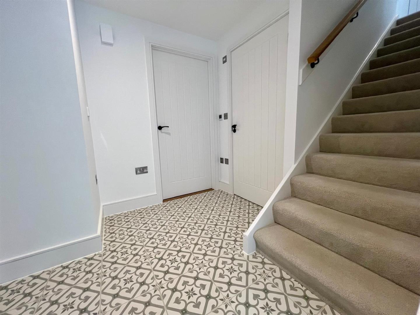 The Lodge is a beautifully designed three-bedroom home that blends character and comfort. Upon entering, you are welcomed into a bright hallway featuring a convenient WC and staircase leading to the first floor.