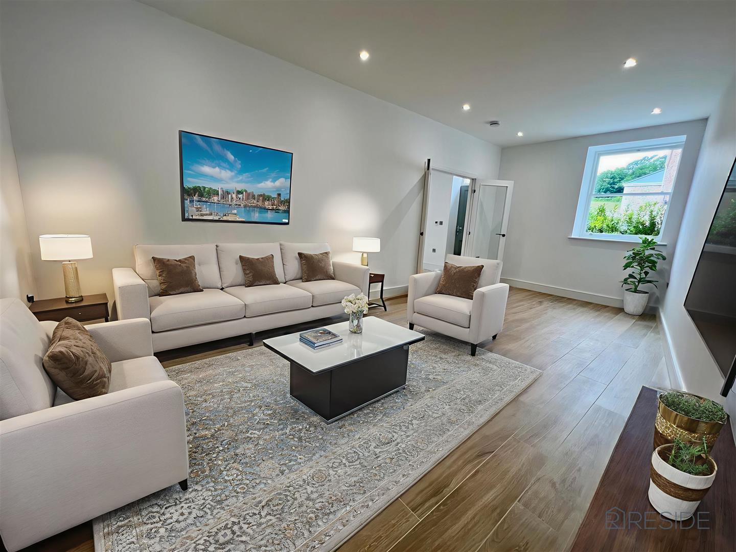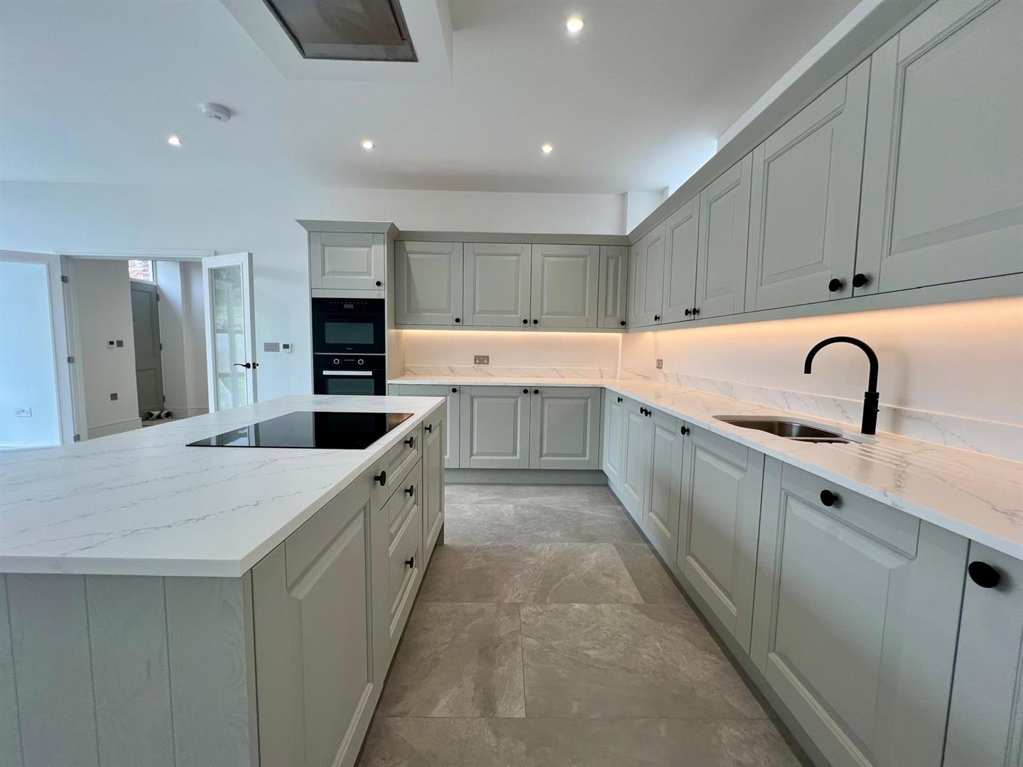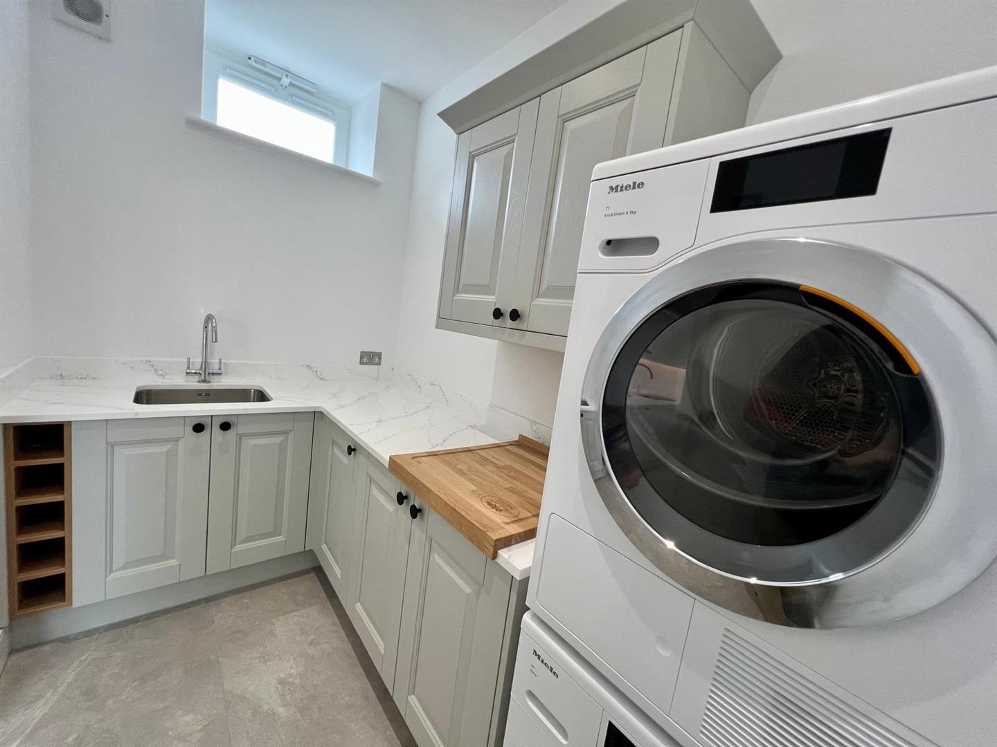 The heart of the home is the spacious open-plan kitchen and dining area, completed with Laura Ashley Kitchen, high-spec Miele appliances, and elegant Pietra worktops. There is also ample space for a cosy snug or sitting area. Double doors open out onto a sunny private garden, ideal for alfresco dining and enjoying the peaceful surroundings. The separate utility adds practicality to this home and ease to everyday living, there is a separate lounge with doors leading out onto the landscaped garden.
