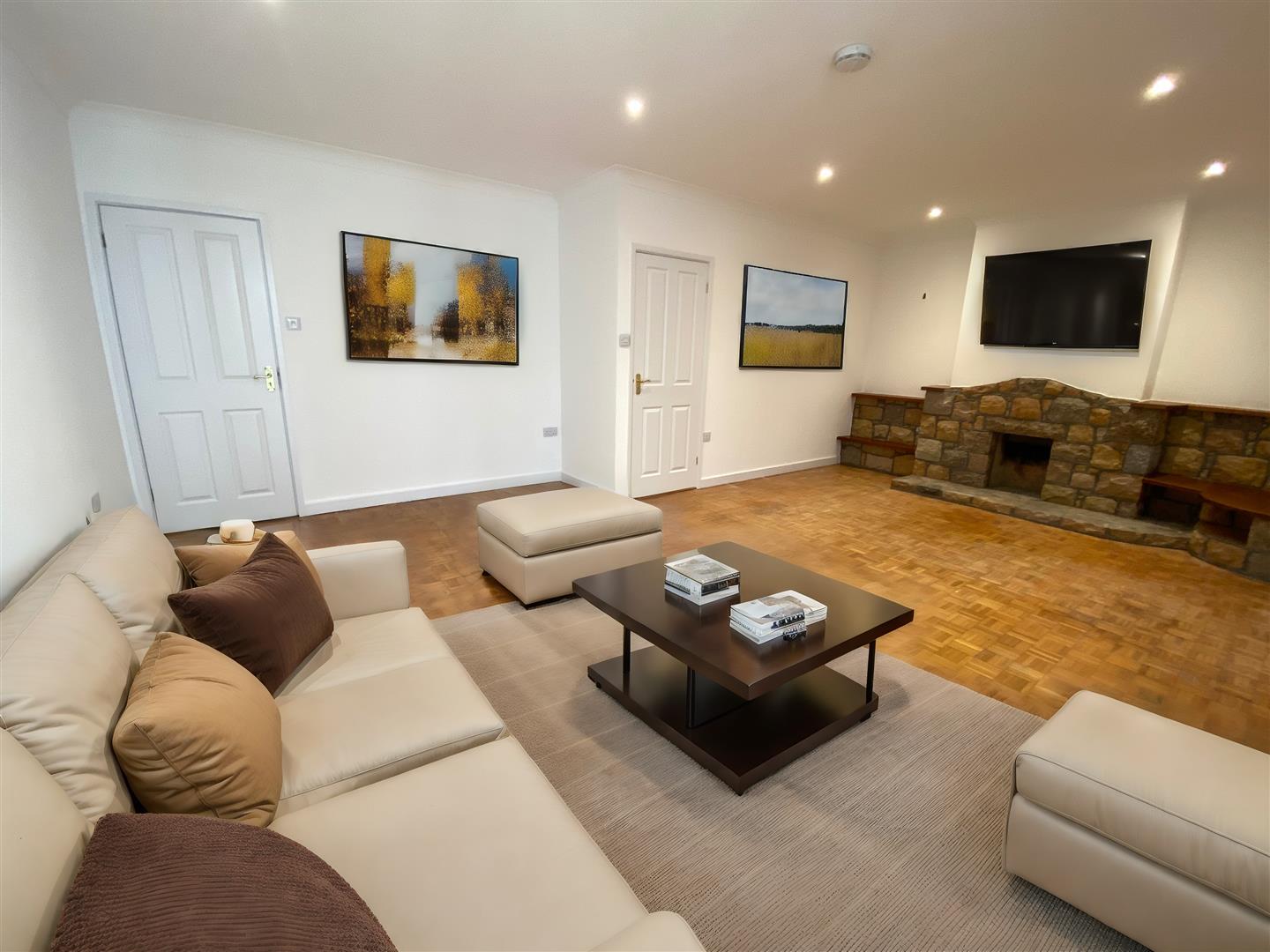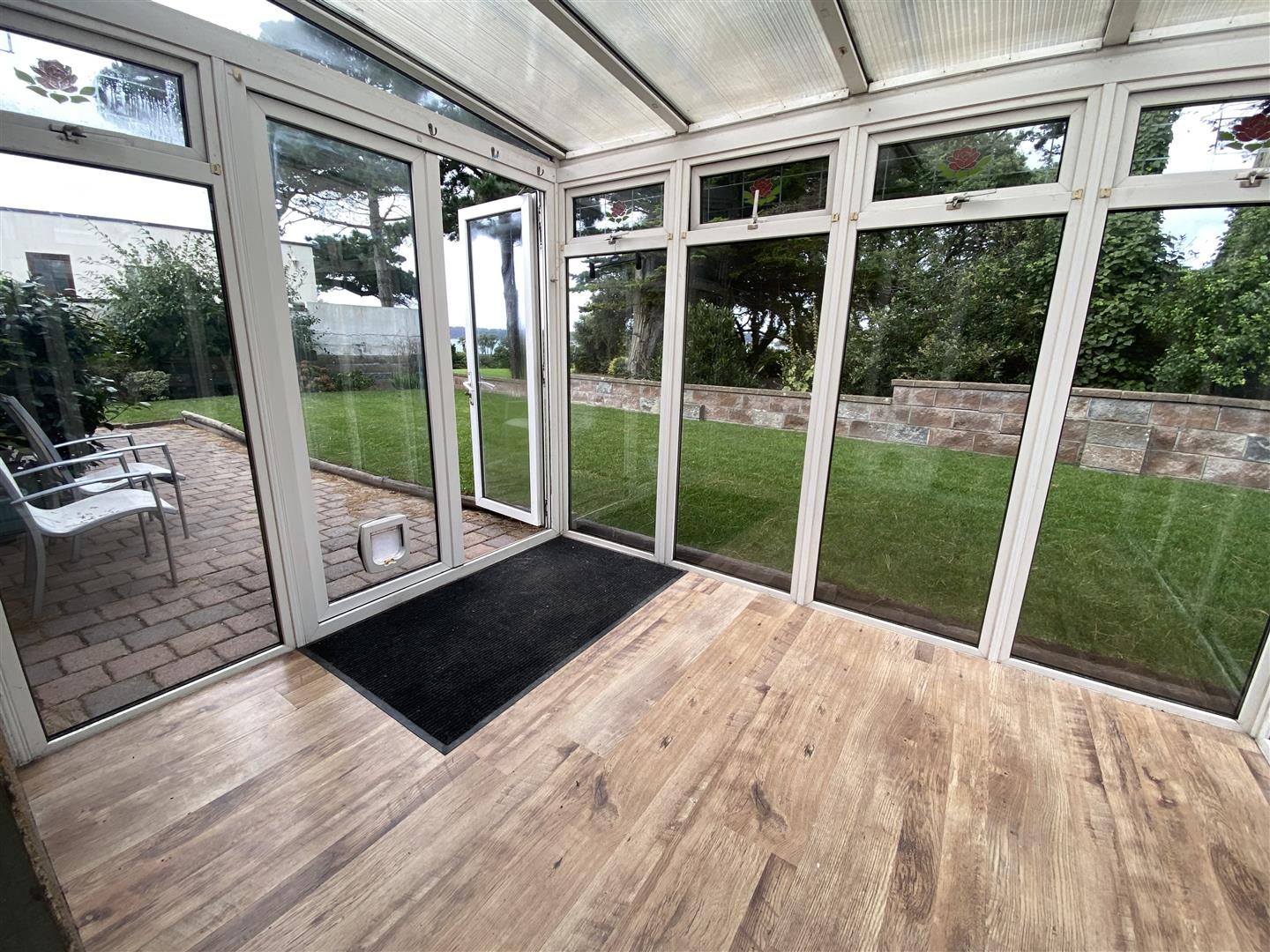 The heart of the home is the spacious living area, where large windows flood the space with natural light offering direct views onto the garden and beyond. Leading off the living area there is a conservatory, this sun-filled room serves as the perfect place to relax all year round. There is a fully equipped kitchen, with access to a private garage.