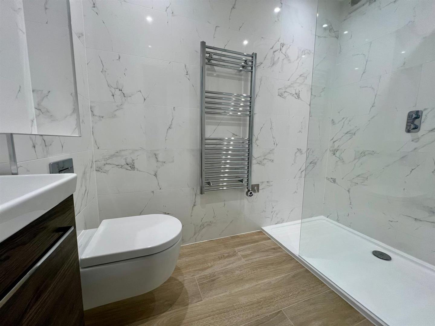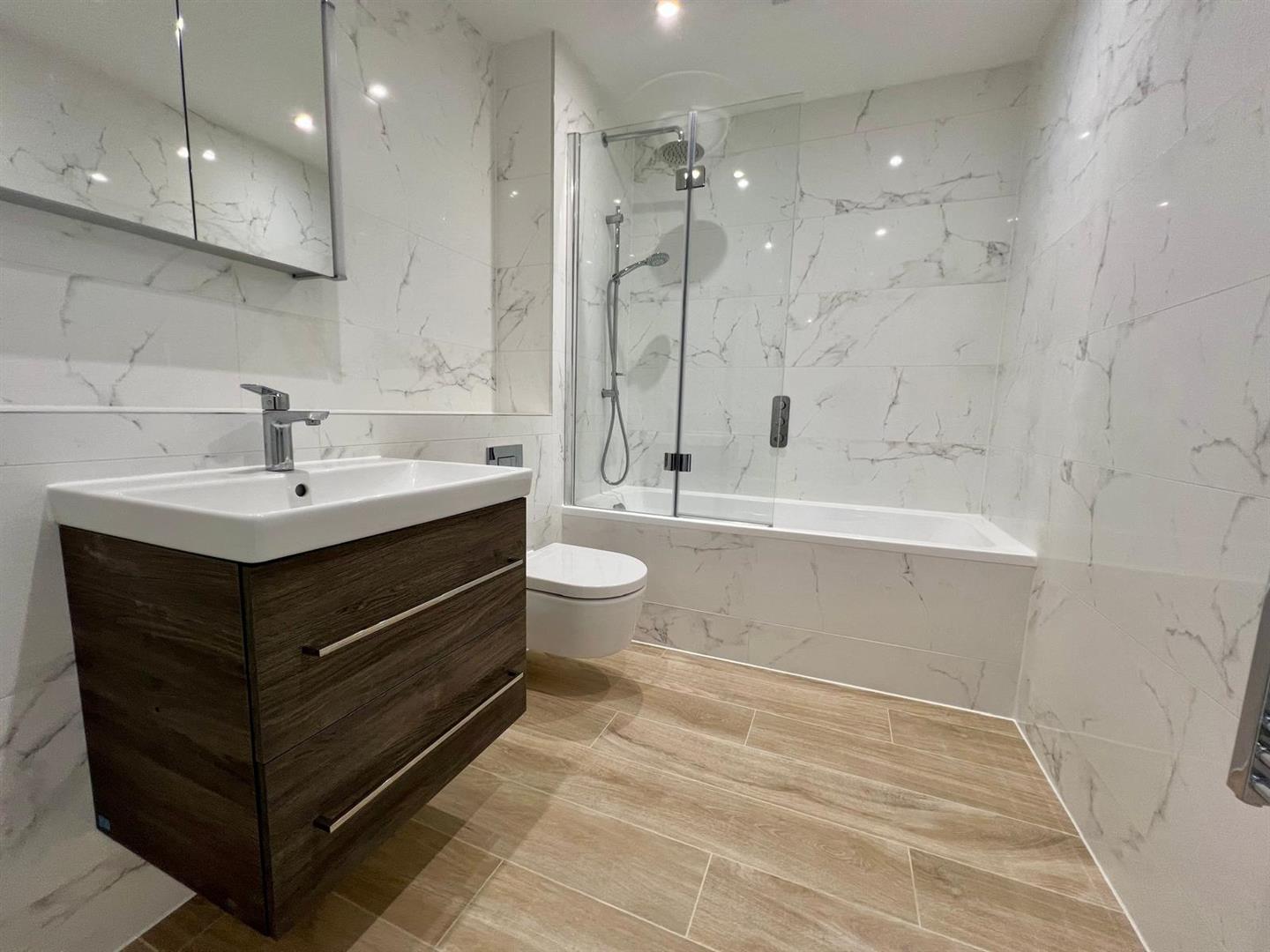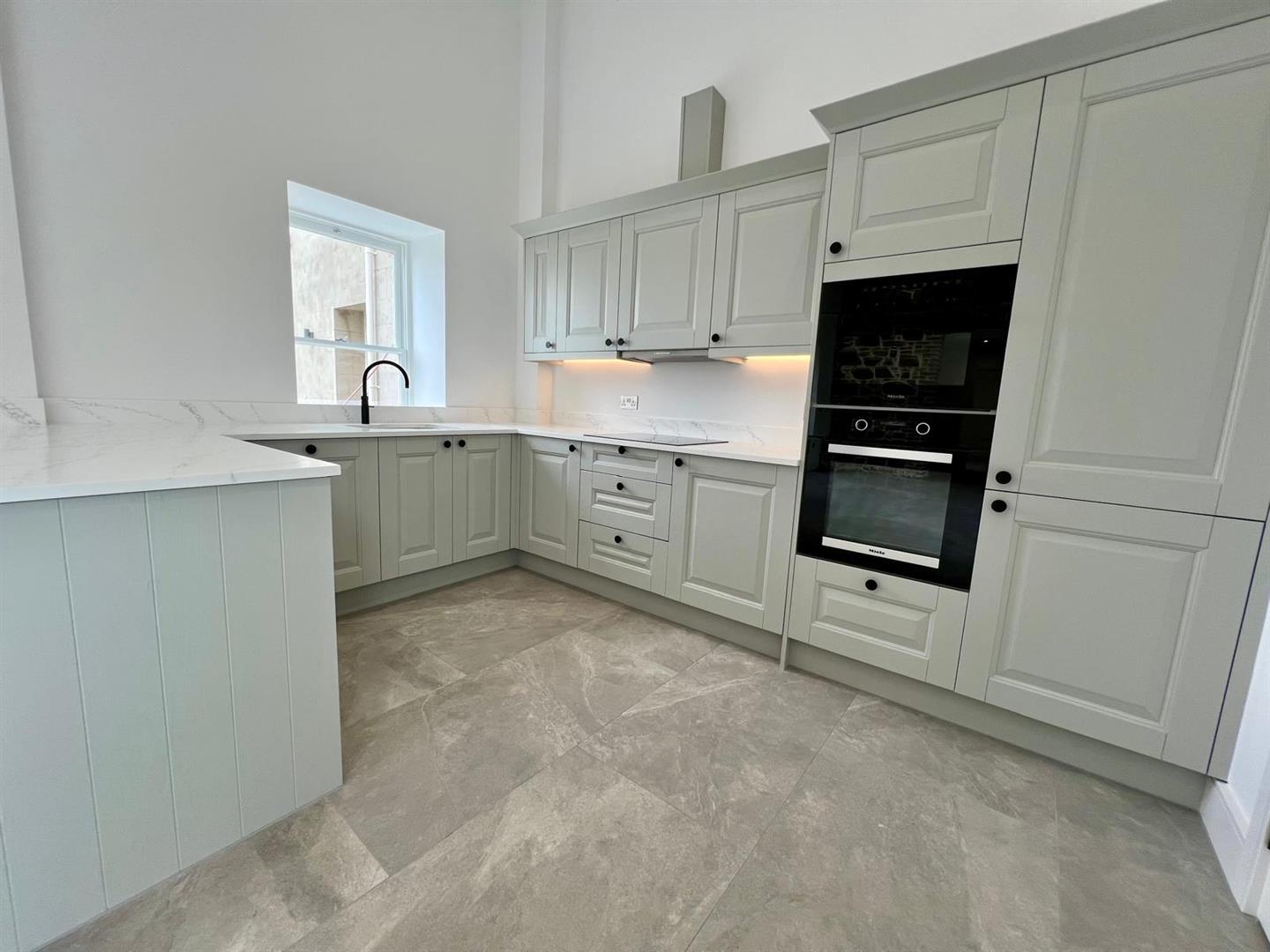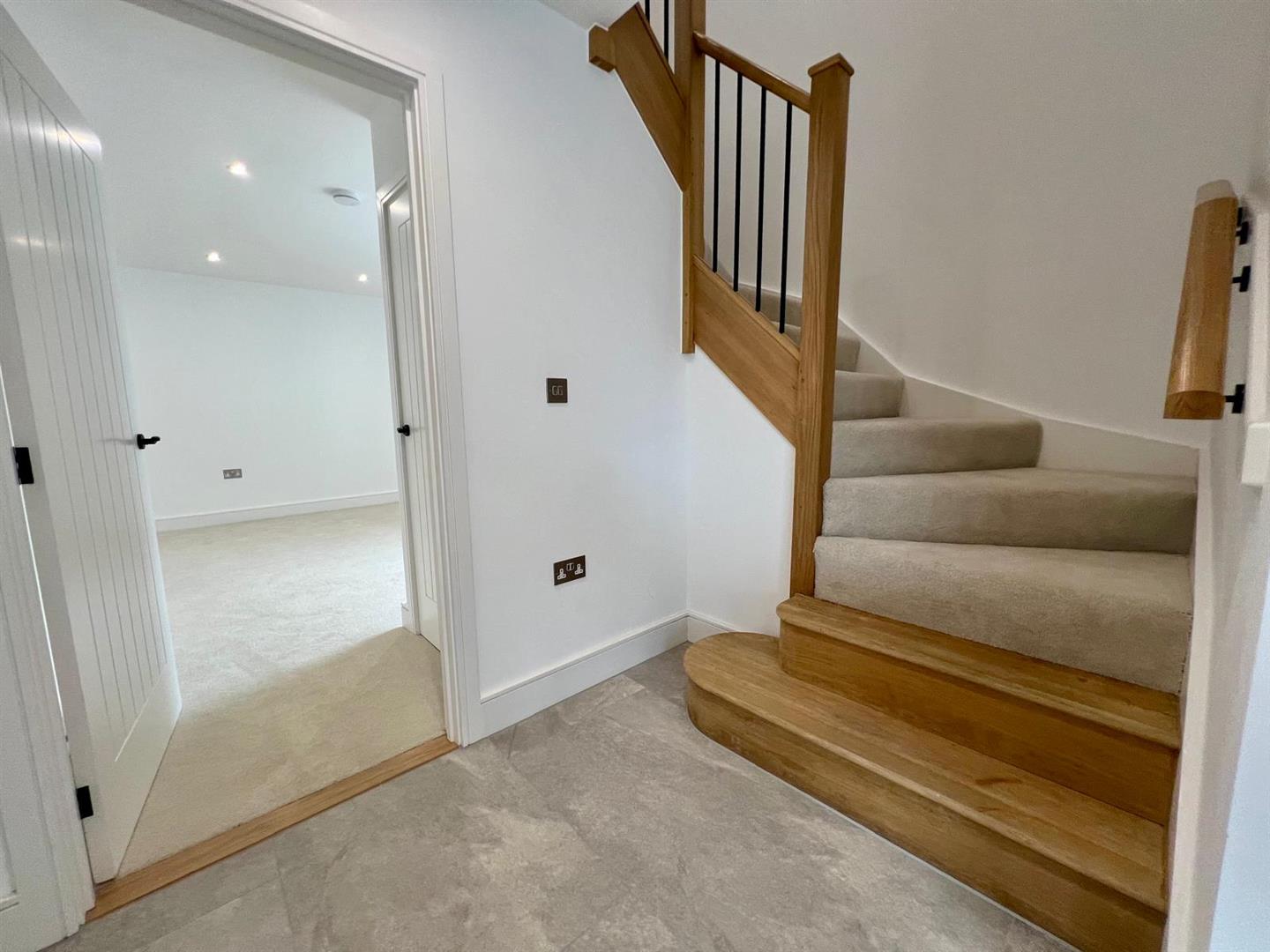 The heart of the home is the spacious open-plan kitchen, dining and living area, completed with Laura Ashley kitchen, high-spec Miele appliances, and elegant Pietra worktops. Double doors open out onto a sunny private garden, ideal for alfresco dining and enjoying the peaceful surroundings. The second bedroom is situated on the ground floor enjoying peaceful garden views. A beautifully designed house bathroom completes the ground floor featuring Villeroy & Boch sanitary ware and underfloor heating.