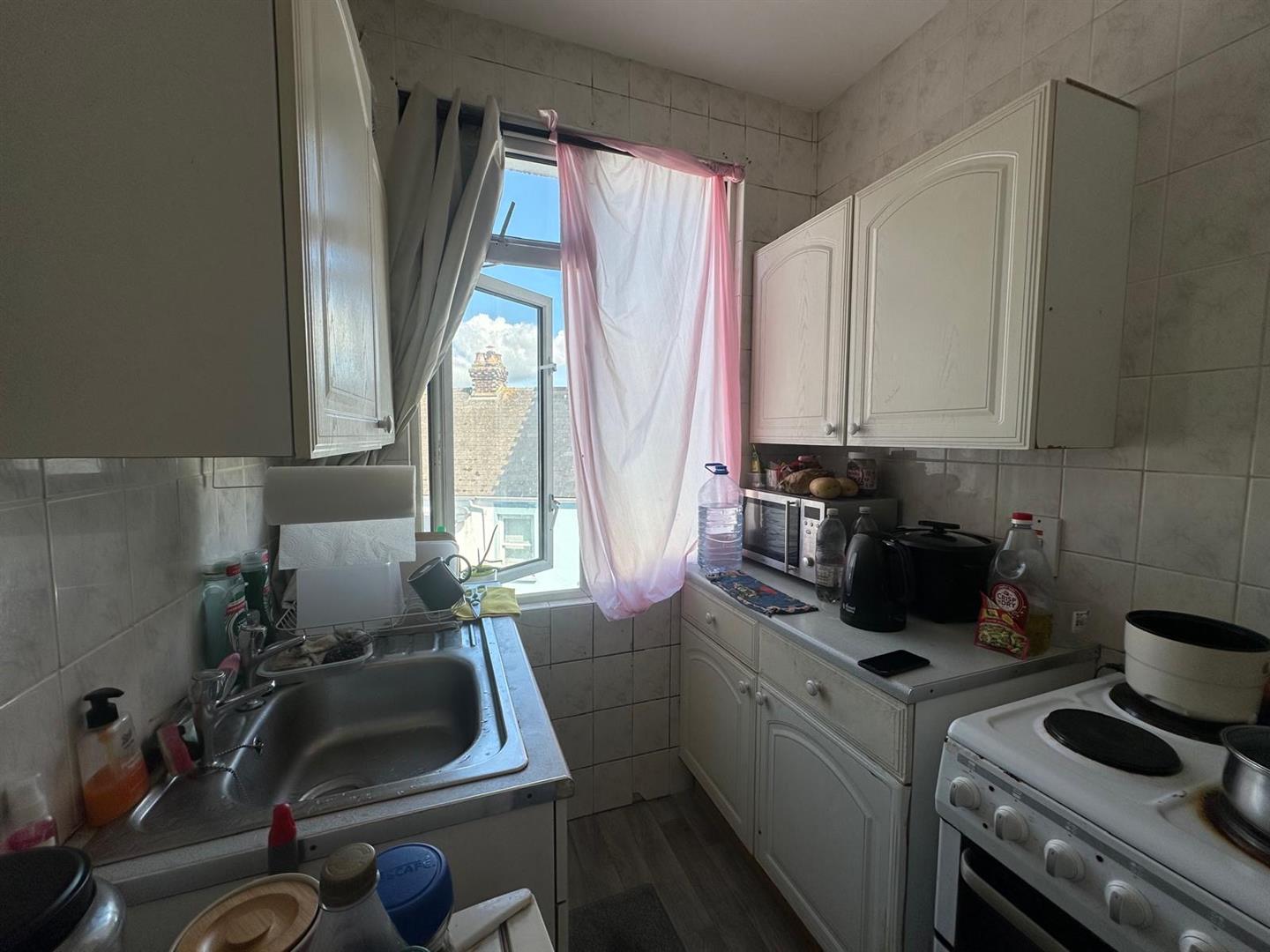 This studio apartment has a spacious living/bedroom area with built in wardrobes and separate kitchen area.